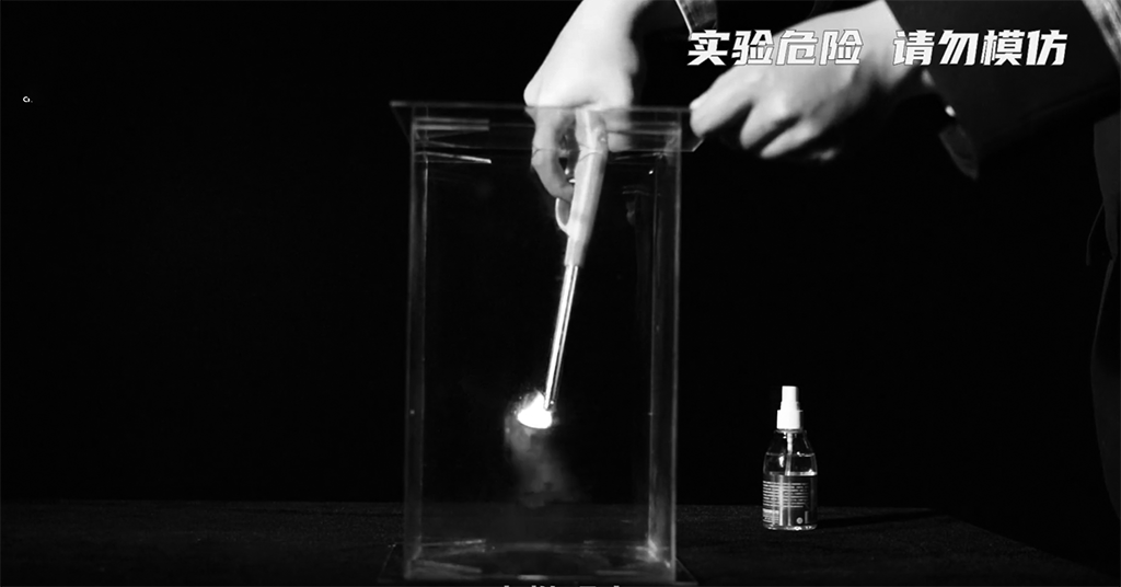 模拟不当使用酒精消毒液。