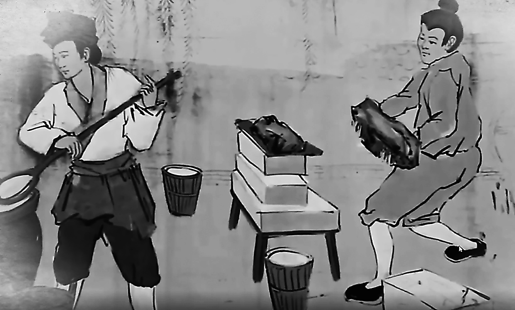 古人在制作豆腐。