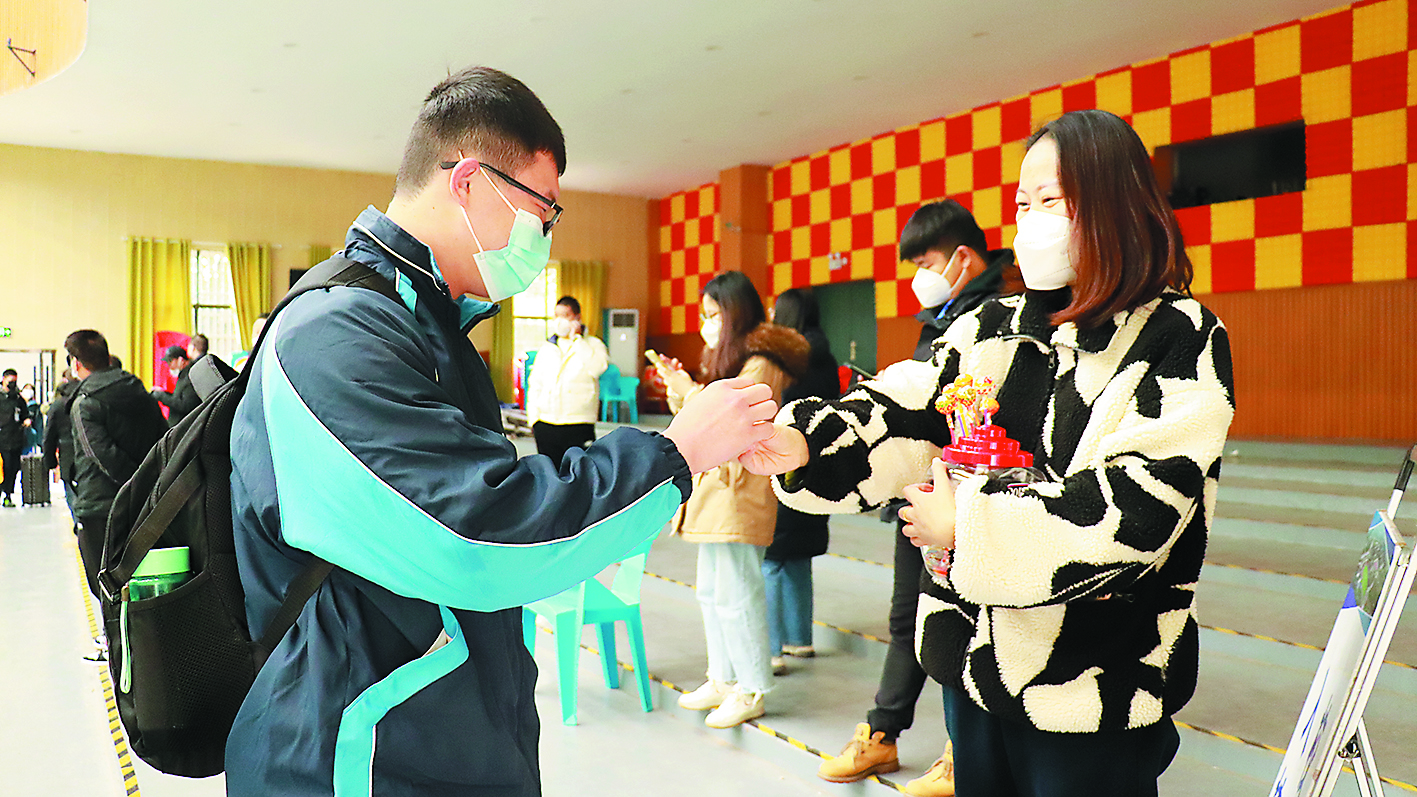 记者在景弘中学校门口看到,初中部三个年级2000余名学生分班错峰复学复课。为防止和阻断疫情进校园,任何校外人员都不能入校,志愿者教师岗为返校学生筑起行李搬运风景线,从校外接应到门岗行李消毒到校内护送,依次进行,一路顺畅,服务于家长省心放心,温馨温暖护好师生返校入学。