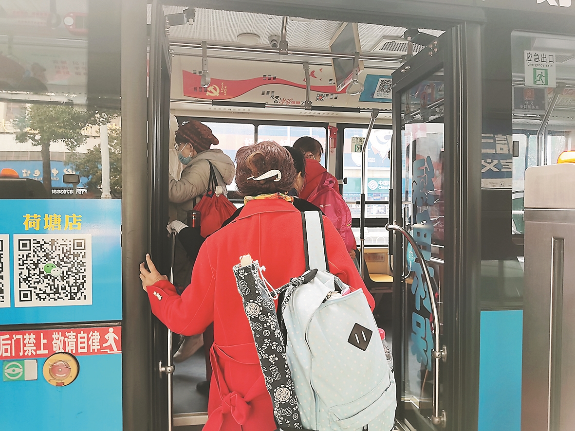 12月8日上午8点50分,记者来到快速公交廊道中心广场站发现,乘坐公交车已不需要查验健康码、行程码和核酸检测报告,车上已经没有专门的疫情防控监督员,但车的前门新增了自动测温仪。广大市民只需规范佩戴口罩,进廊道和上车时测量体温,即可刷卡或投币乘车。