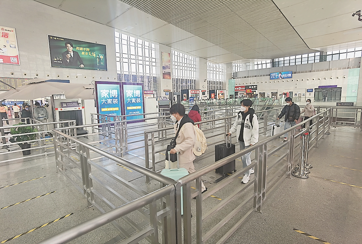武广株洲西站,进站口、购票处等地方的核酸检测和查验卡口已全部撤离。 记者/谭浩瀚 摄