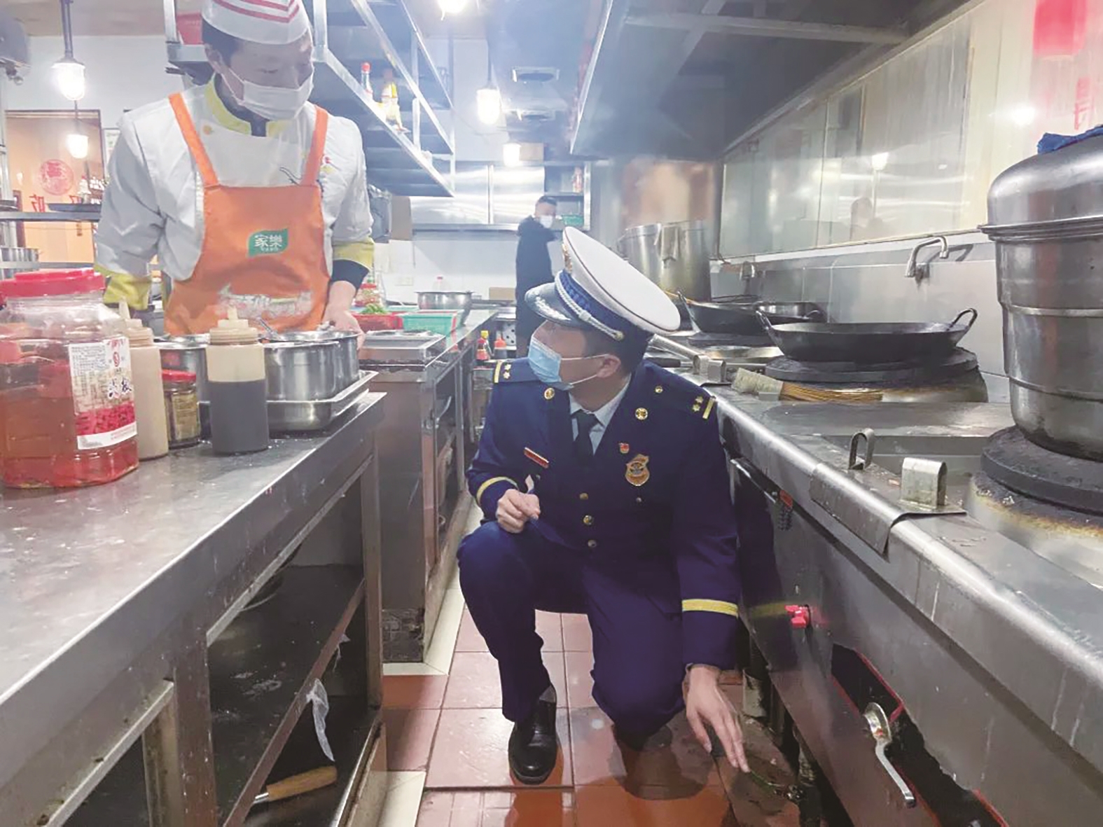 消防监督员检查餐饮店“环保油”使用情况。 通讯员供图