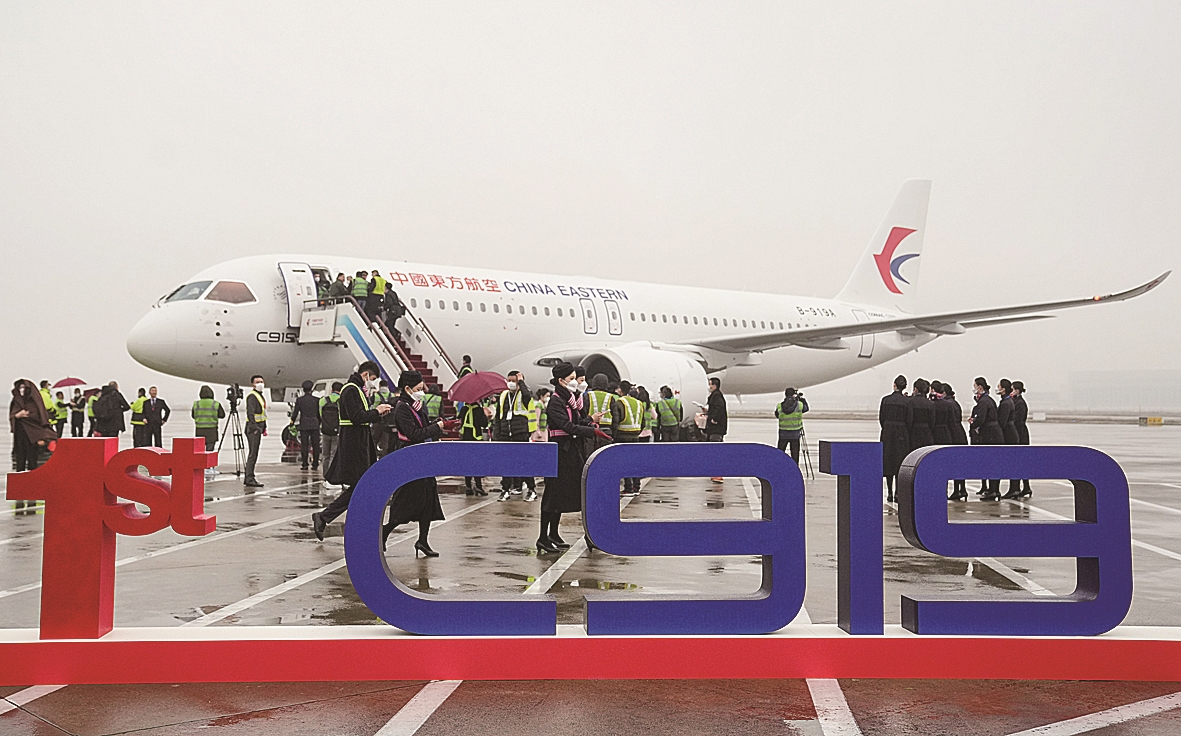 在交付环节,C919主制造商中国商飞向东航交付“C919全球首架纪念钥匙”,并颁发飞机销售证。民航华东地区管理局向东航颁发国籍登记证、单机适航证(AC证)、电台执照。随后,在C919的设计研制人员、市场运营团队和行业专家们的共同见证下,这架C919完成了从上海浦东至虹桥的“首秀”飞行,航班号为MU919。