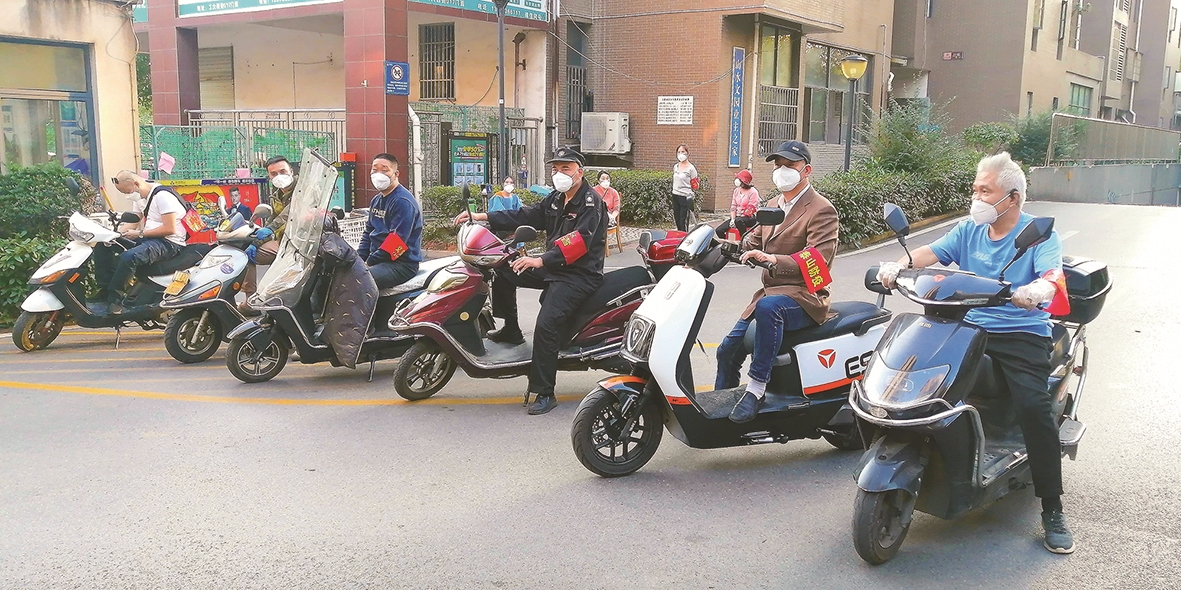 山水文园小区的志愿者轻骑队,负责运送物资到户。 马春华 摄