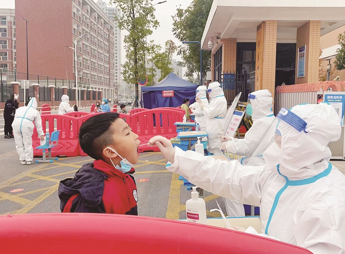 经专业培训,教师为学生采集核酸。 株洲日报全媒体记者/戴凛 摄