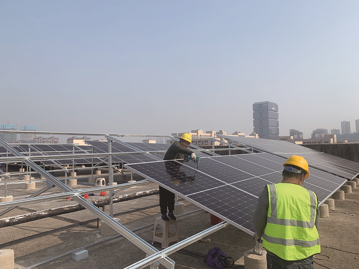 搭支架、检测水平面、固定光伏发电板……在项目现场,10多名工人正在紧张有序施工。湖南高科园创能源管理有限公司(以下简称高科能源)技术管理人员贺祯告诉记者,因为疫情因素影响,这个项目的开工推迟了半个月。幸好近期天气好,施工方全力奋战抢抓工期,任务已完成过半,预计今年年底建成,年后即可投入使用。届时,园区企业不仅可使用清洁能源带来的电量,而且还可享受优惠电价,降低能源成本。