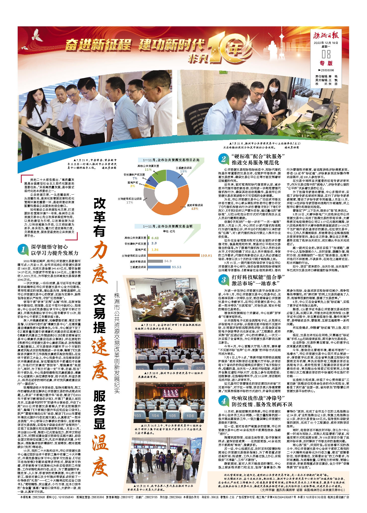 如何推动公共资源阳光交易,打造更好的营商环境?一年来,株洲市公共资源交易中心充分发挥桥梁纽带作用,以党的建设为引领,以改革创新为动力,以科技赋能为手段,以文明创建为抓手,务实而为,着力打造改革有力度,交易提速度,服务显温度的公共资源交易平台。
