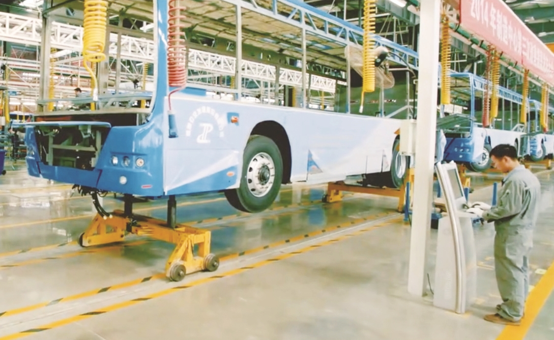 客车生产线。