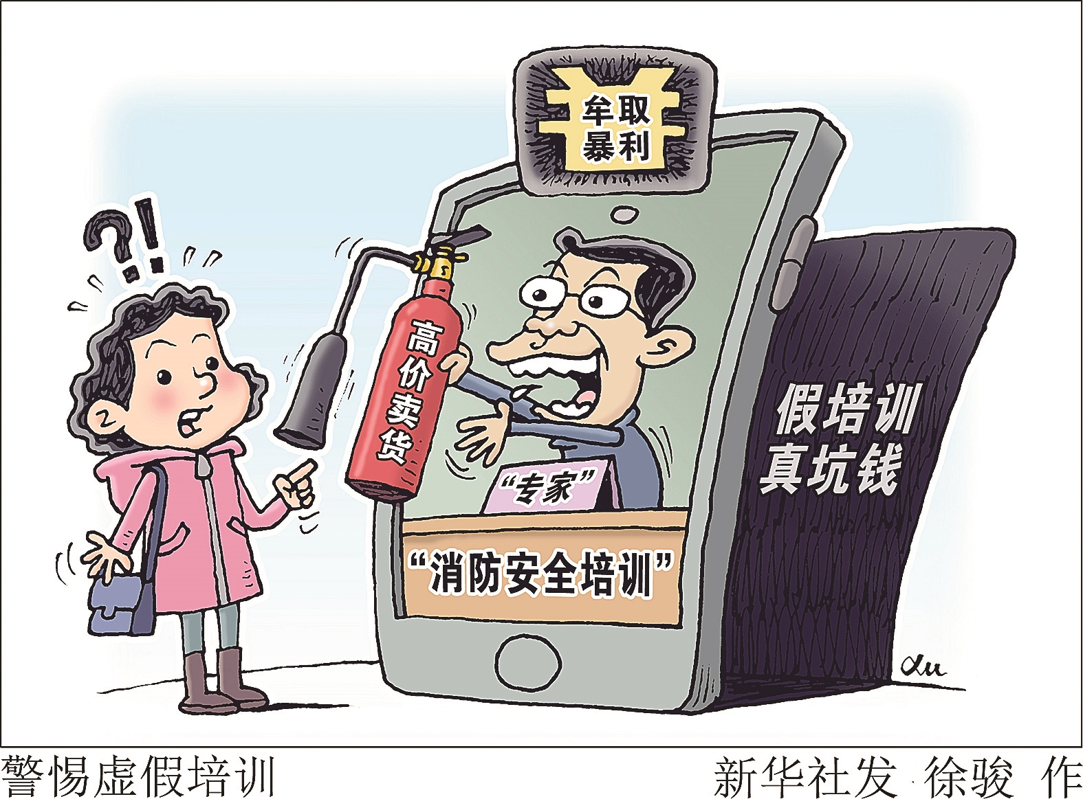 新华社记者调查发现,一些不法分子自诩为“消防安全专家”或假冒消防部门工作人员,以组织所谓的消防安全知识培训为幌子,向中小学、企事业单位或社区居民高价兜售来路不明的消防器材。