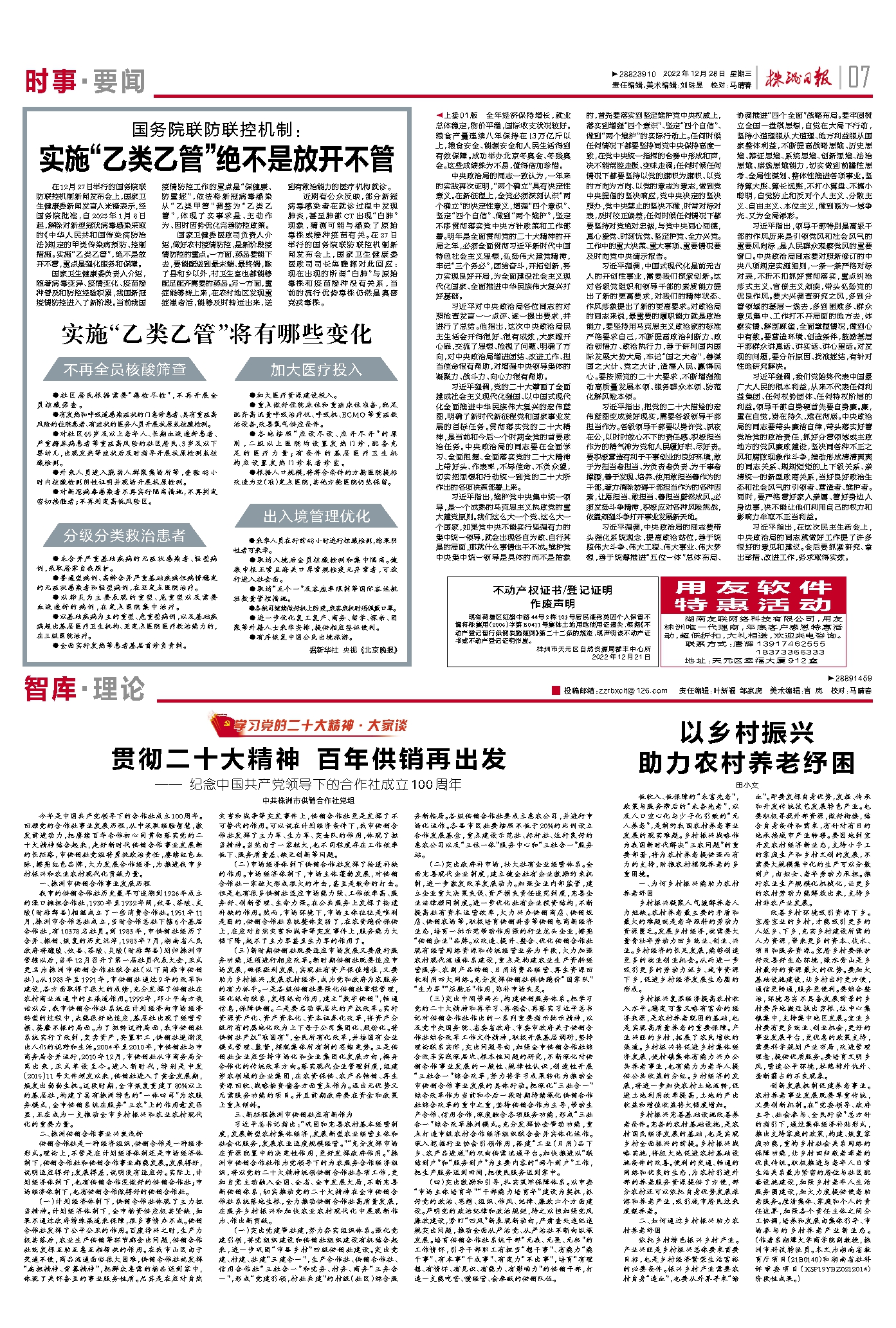 创新发展机制促建养老事业。农村养老事业发展既要尊重传统,又要创新机制。在“党委领导、政府主导、社会参与、全民行动”总方针的指引下,通过集体经济补贴形式,推出支持家庭的政策,构建、恢复家庭功能,重构乡村社会关系网络的保障功能,让乡村回归敬老孝老的优良传统。积极推进与老年人日常生活关系最为紧密的居住与社区配套设施建设,加强乡村老年人生活服务圈建设,加大力度提供便老助老服务。厘清集体、家庭和个人的责任边界,加强各个责任主体之间分工协调,培养和发展由集体引导、市场参与的乡村养老产业新业态。 (作者系湘潭大学商学院副教授,株洲市科技特派员。本文为湖南省教育厅项目(21B0140)和湖南省社科评审委项目(XSP19YBZ0212014)阶段性成果。)