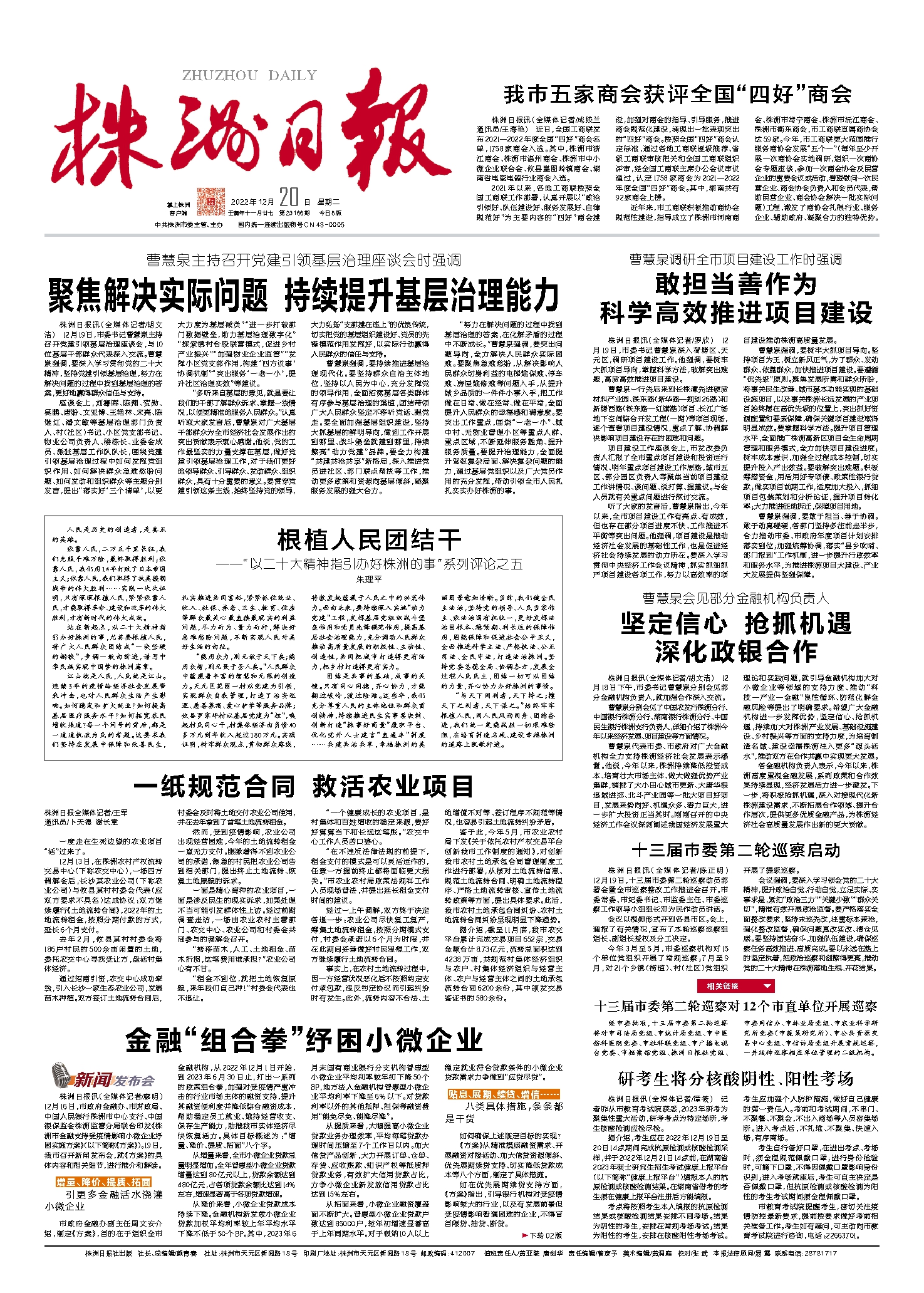 站在新起点,以二十大精神指引办好株洲的事,尤其要根植人民,将广大人民群众团结成“一块坚硬的钢铁”,步调一致向前进,谱写中华民族实现中国梦的株洲篇章。