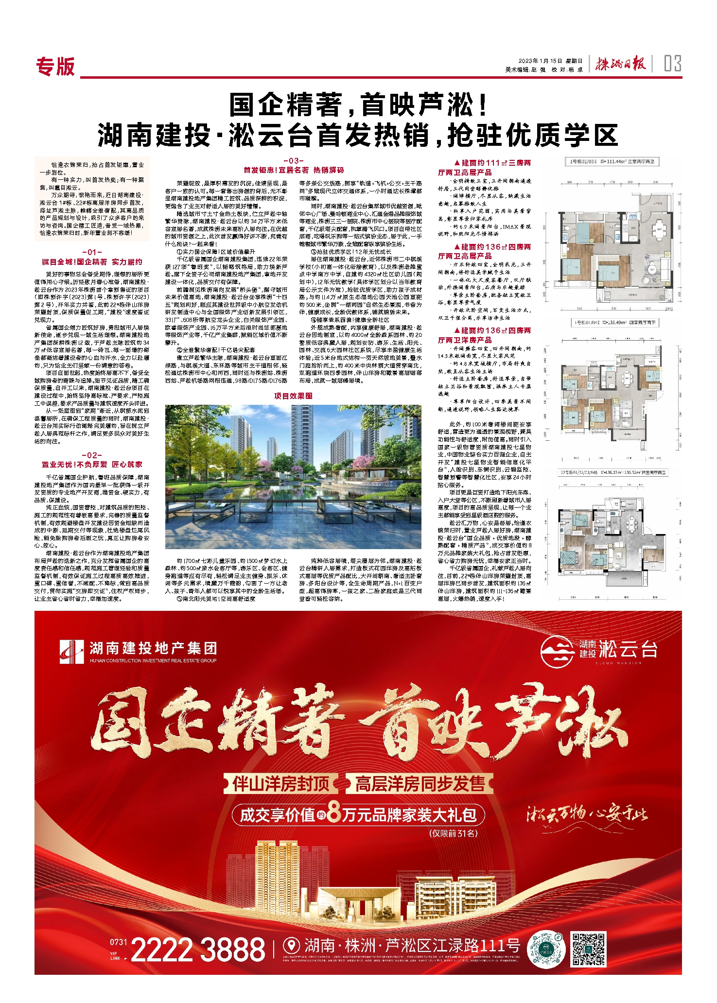 国企精著,首映芦淞!湖南建投·淞云台首发热销,抢驻优质学区