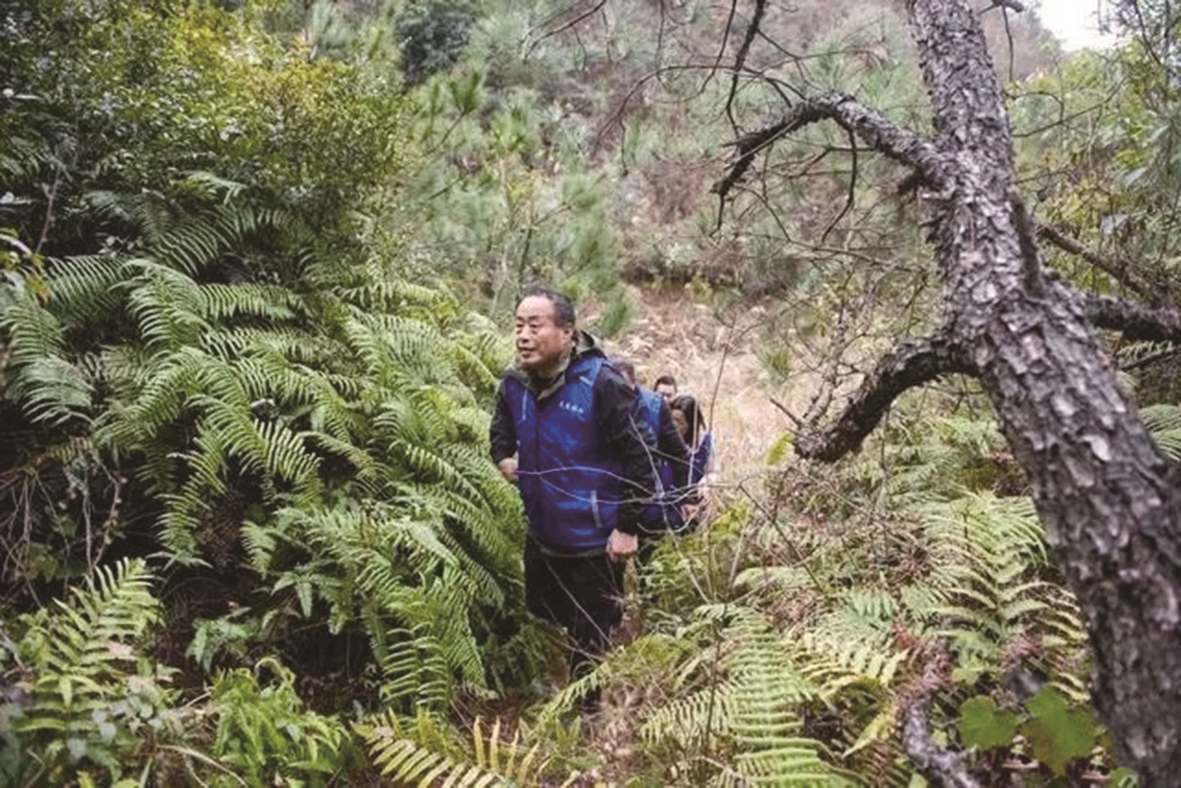 在炎陵县下村乡,牛头坳候鸟保护站工作人员在巡山。