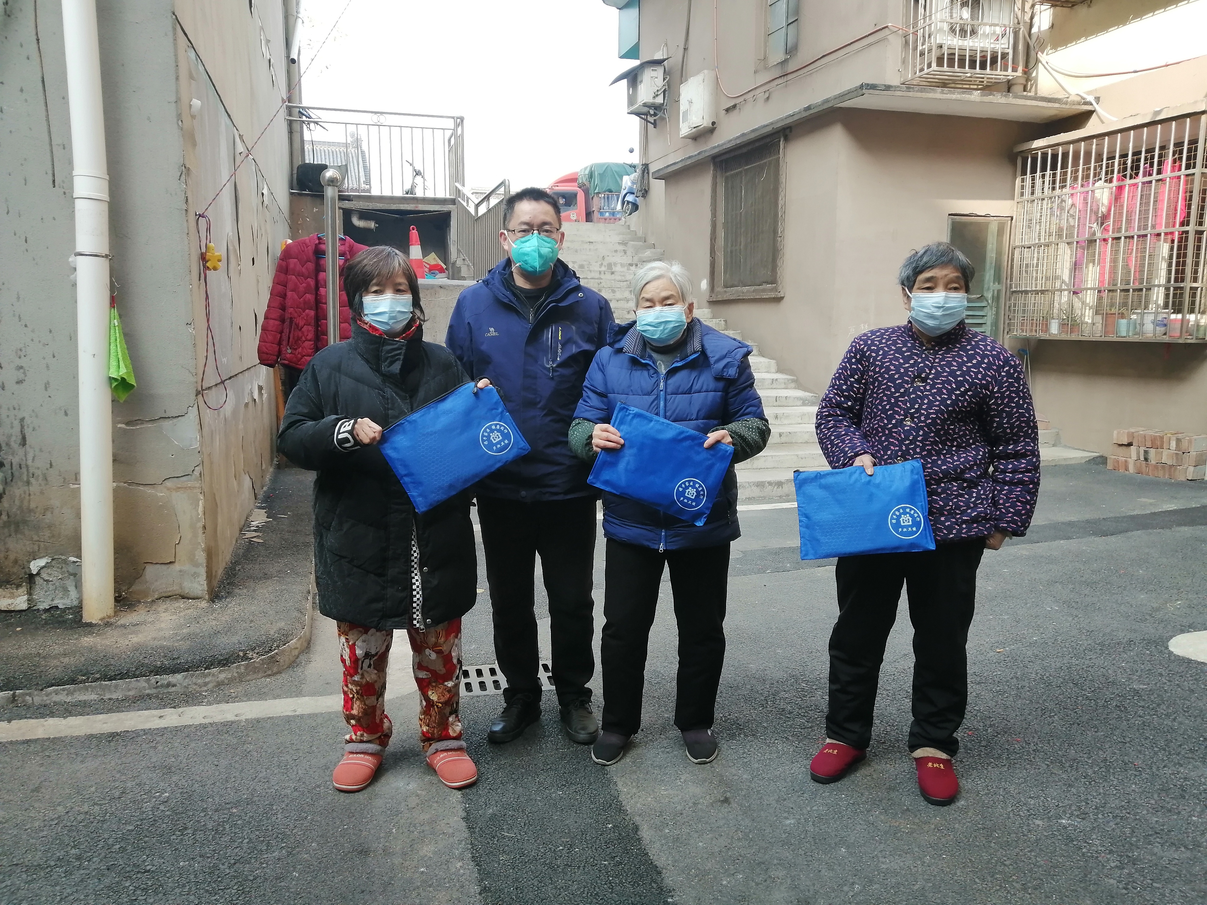 1月3日,新年首个工作日,位于芦淞区建宁街道的徐家桥社区,“防疫健康包”正在派送中。社区干部和党员志愿者挨家挨户给五保户、低保户、80岁以上合并基础病人群、60岁以上人群等重点人发放“防疫包”,不忘道上一声祝福,“新年快乐,希望您健健康康!”