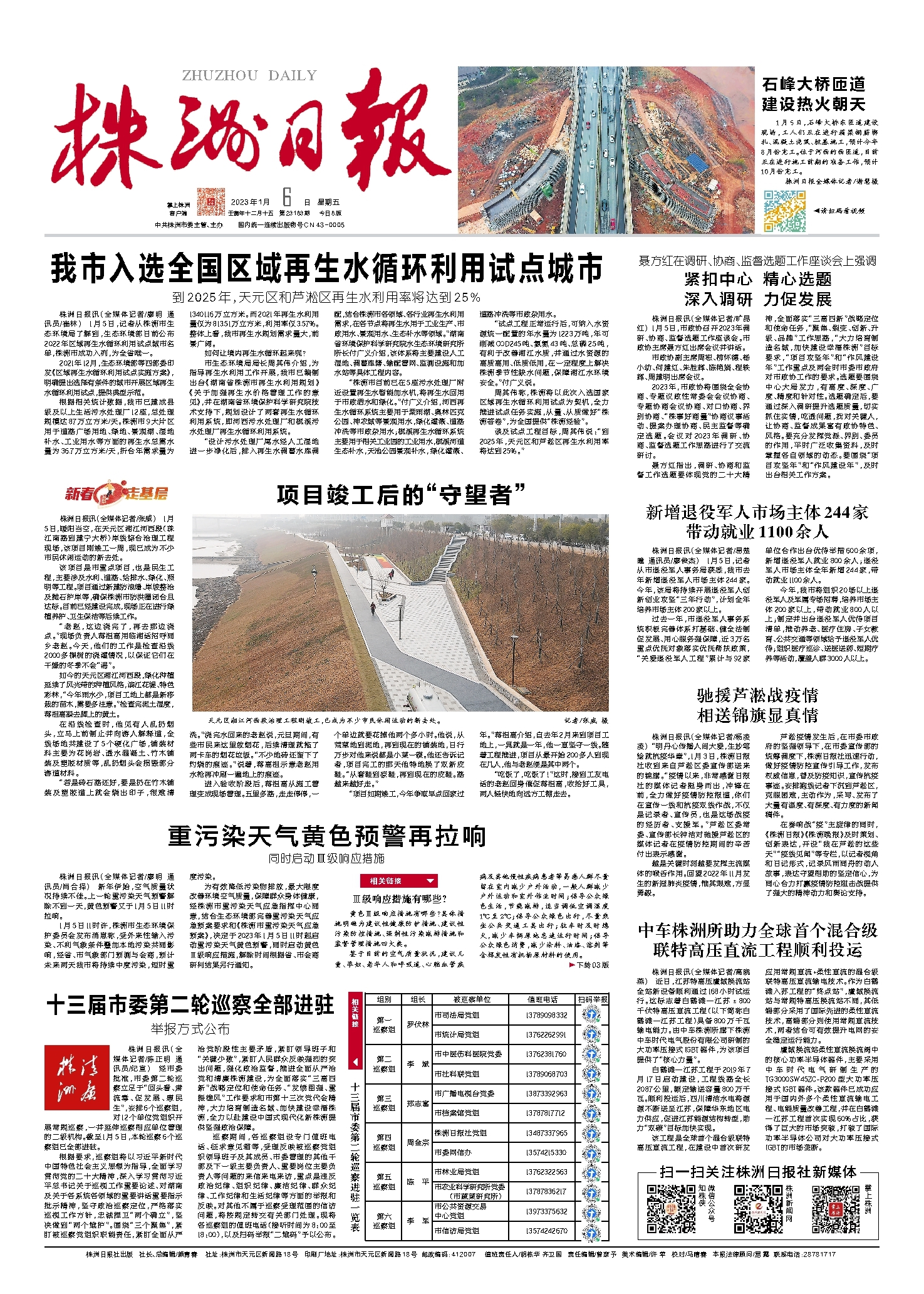株洲日报讯(全媒体记者/陈正明 通讯员/纪宣) 经市委批准,市委第二轮巡察立足于“回头看、肃流毒、促发展、惠民生”,安排6个巡察组,对12个单位党组织开展常规巡察,一并延伸巡察相应单位管理的二级机构。截至1月5日,本轮巡察6个巡察组已全部进驻。