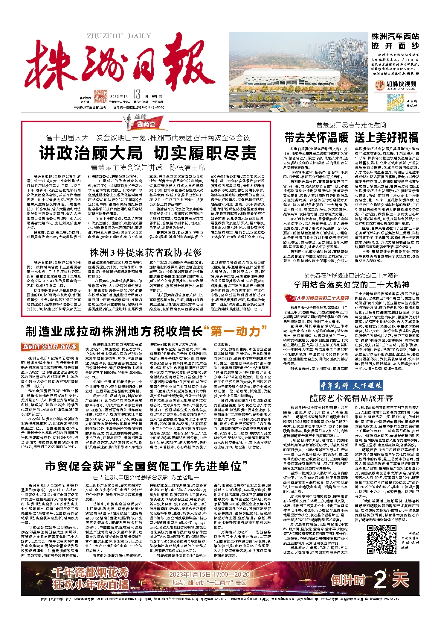 株洲日报讯(全媒体记者/叶新福) 省十四届人大一次会议将于1月14日在长沙开幕。11日晚上、12日下午,株洲市代表团在驻地举行两次代表团全体会议,并召开代表团代表中的中共党员会议。市委书记曹慧泉主持会议并讲话。市委副书记、市长陈恢清,省人大监察和司法委员会主任委员龙朝阳,省人大法制委员会主任委员肖迪明,市人大常委会党组书记、主任刘光跃出席会议。