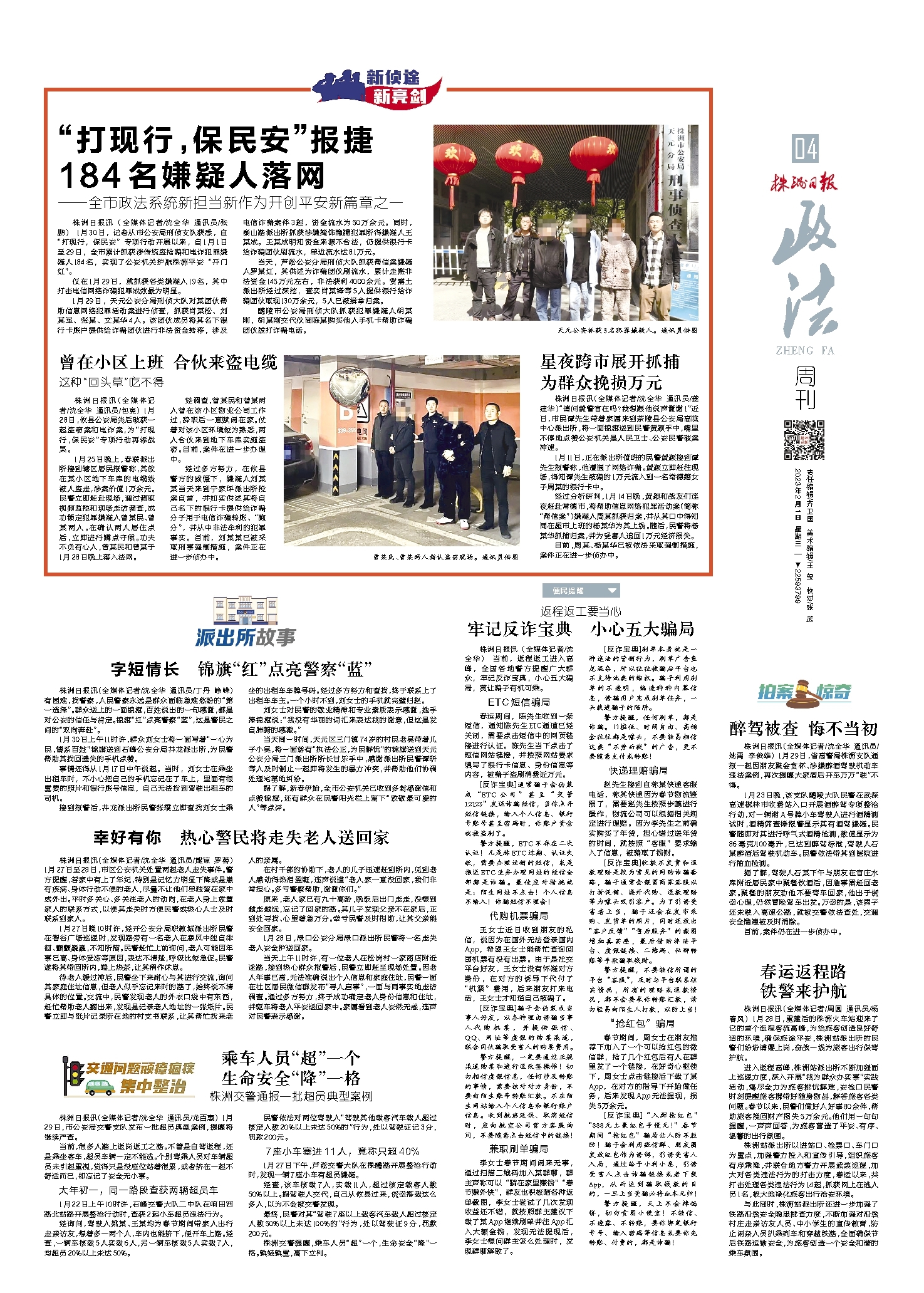 “打现行,保民安”报捷184名嫌疑人落网