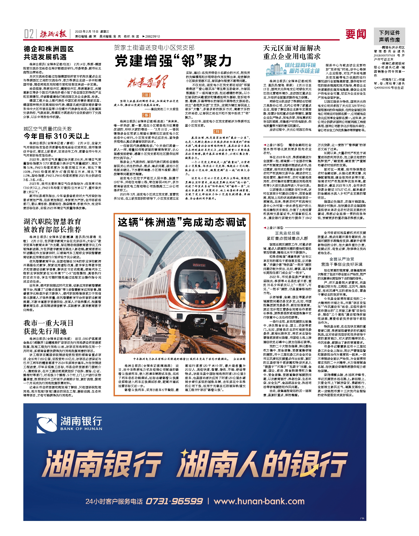 2023年02月15日《株洲日报》