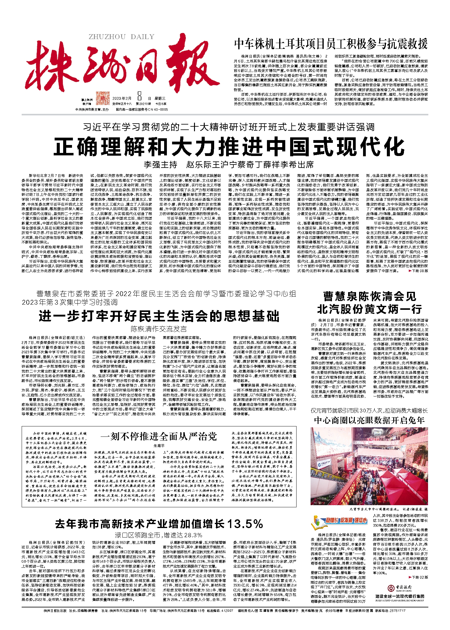 曹慧泉对黄文炳一行来株表示欢迎,感谢北汽对株洲经济社会发展作出的贡献。他说,2022年,株洲克服多重发展压力与超预期因素影响,主要经济指标增长居全省前列,各方面工作取得积极成效,制造业首次超过房地产业成为拉动地方税收增长“第一动力”。新能源汽车产业发展是大势所趋,北汽株洲基地在技术、管理等方面具有明显优势,未来可期。希望北汽股份抢抓国省战略机遇,加大对株洲基地的投入和布局力度,推动株洲基地迈上发展新台阶。双方要进一步加强沟通交流,及时协调解决问题,巩固深化合作基础,共同努力提升产业链供应链稳定性和竞争力,做优做强新能源汽车产业。株洲将全力以赴支持北汽股份在株发展。