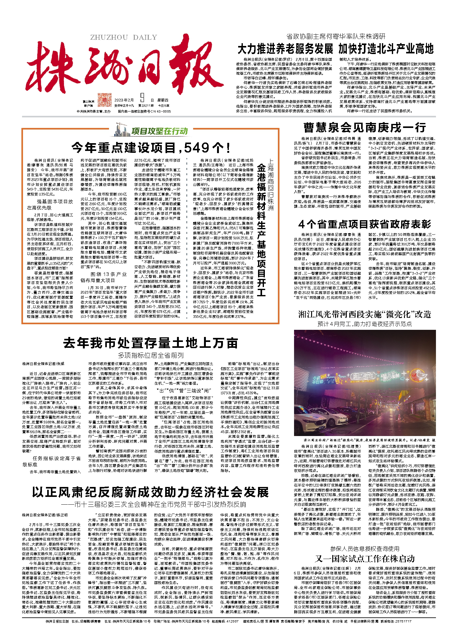 株洲日报讯(全媒体记者/廖喜张 通讯员/刘朔 马国安) 今年,我市开展“项目攻坚年”活动。根据《株洲市2023年重点项目计划》,我市计划安排重点建设项目549个,总投资5430亿元,年度投资1135亿元。