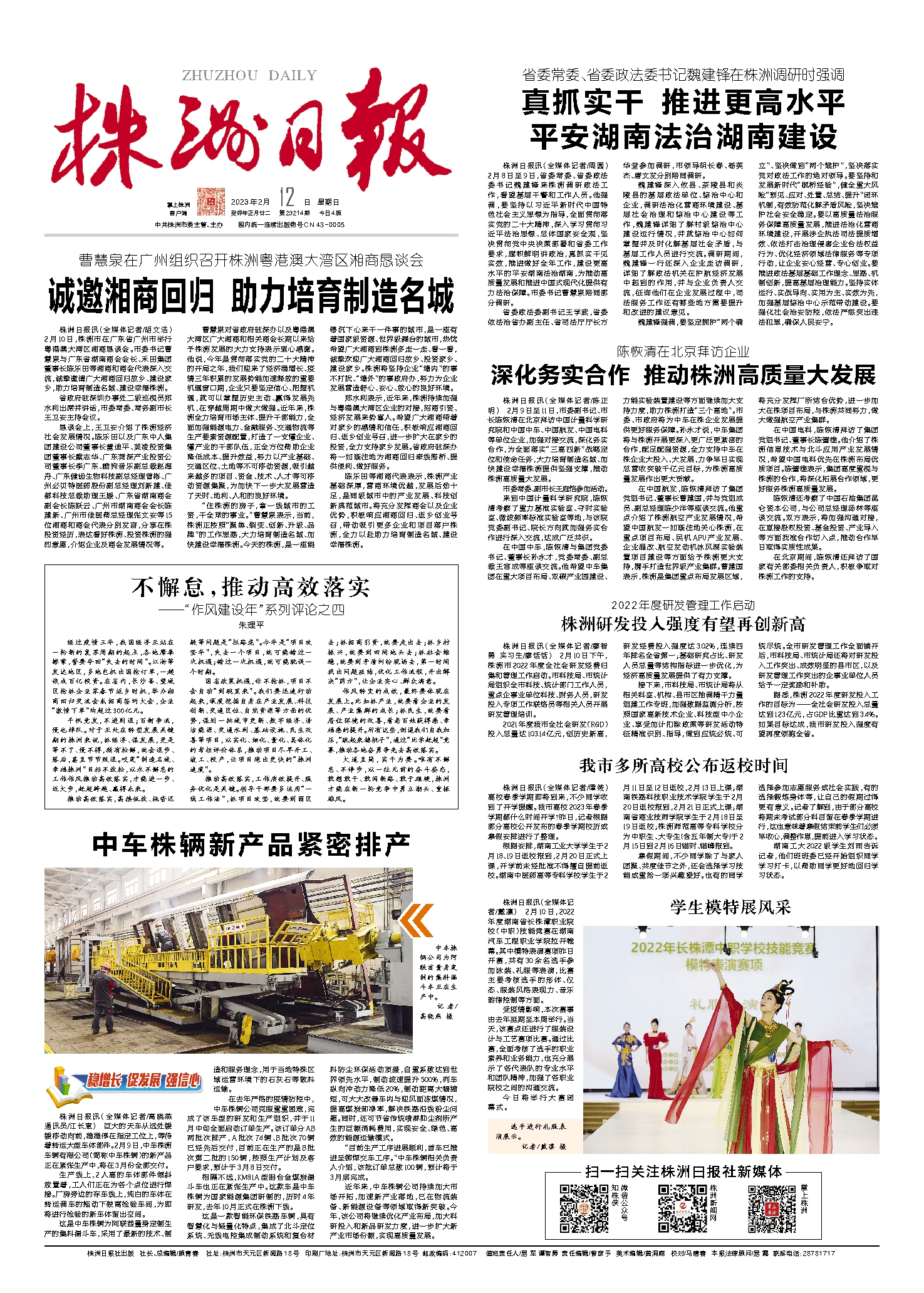 “住株洲的房子,拿一线城市的工资,干全球的事业。”曹慧泉表示,当前,株洲正按照“聚焦、裂变、创新、升级、品牌”的工作思路,大力培育制造名城、加快建设幸福株洲。今天的株洲,是一座能够沉下心来干一件事的城市,是一座有着国家级资源、世界级舞台的城市,热忱希望广大湘商到株洲多走一走、看一看,诚挚欢迎广大湘商回归故乡、投资家乡、建设家乡。株洲将坚持企业“墙内”的事不打扰、“墙外”的事政府办,努力为企业发展营造舒心、安心、放心的良好环境。