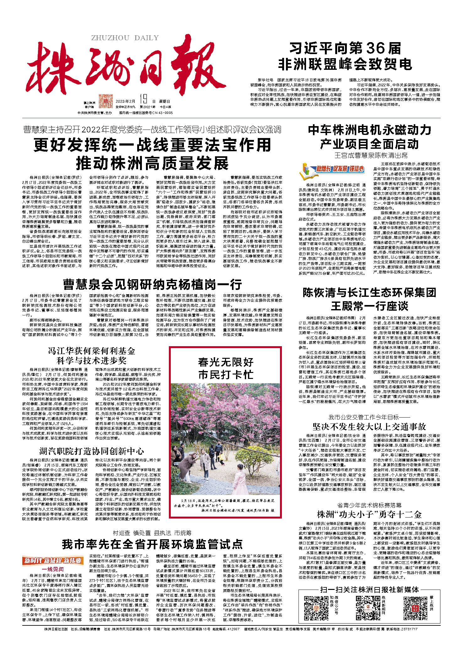 陈恢清对王殿常一行表示欢迎。他说,株洲是制造业大市,产业基础雄厚。近年来,我们牢记习近平总书记“守护好一江碧水”的殷殷嘱托,花大力气推动清水塘老工业区搬迁改造,加快产业转型升级,生态环境持续改善。当前,株洲正全面落实“三高四新”战略定位和使命任务,加快培育制造名城、建设幸福株洲。希望双方更加注重项目规划和降本增效,加快推进现有项目建设。同时,深化株洲全域水环境治理,在污水管网建设、水系水体污染治理、海绵城市建设、重大水利项目投资等方面加强合作,共同把株洲打造成城市水环境治理示范城市。株洲将全力为企业发展提供良好环境和优质服务。