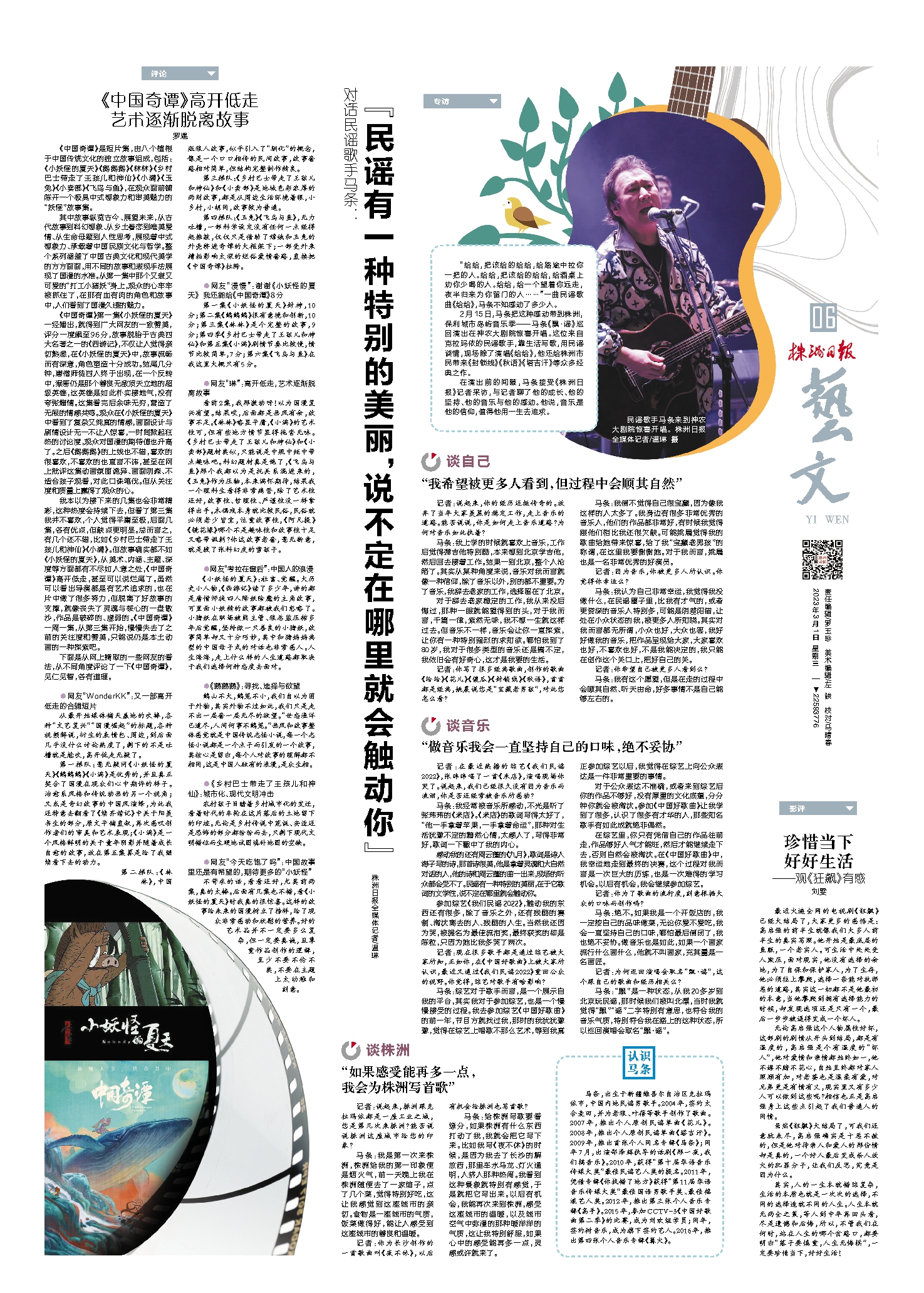 “民谣有一种特别的美丽,说不定在哪里就会触动你”