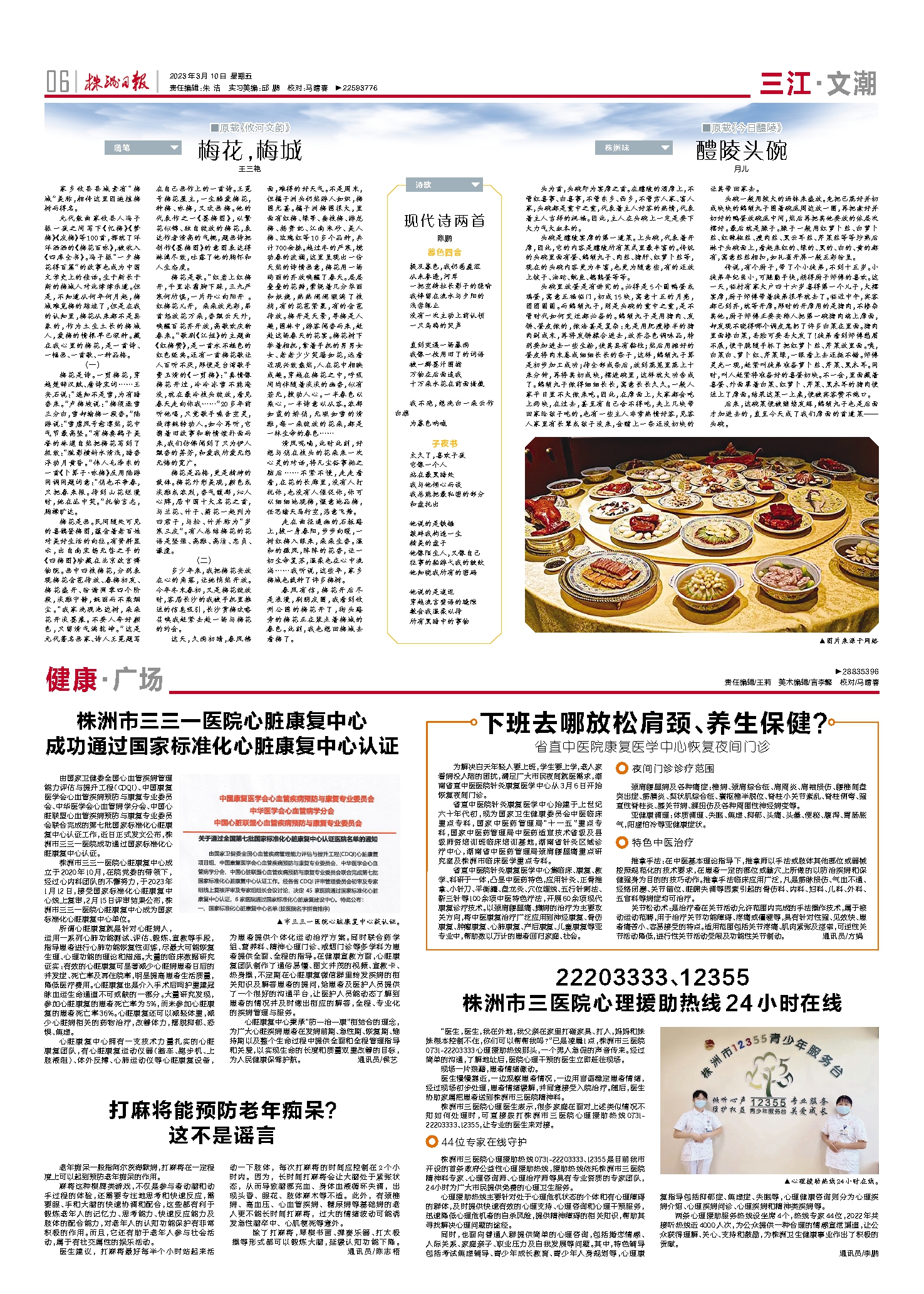 22203333、12355株洲市三医院心理援助热线24小时在线