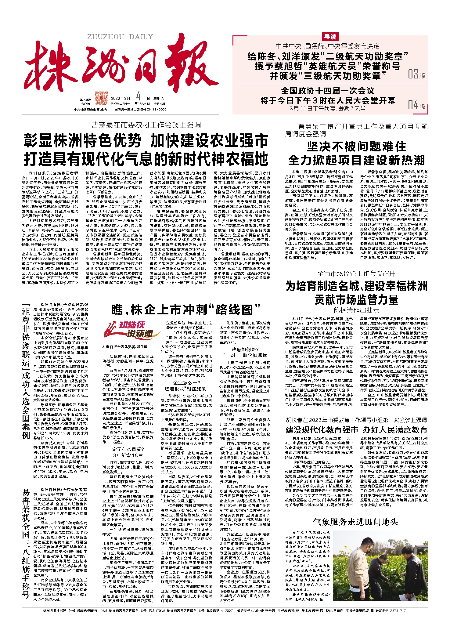 株洲日报讯(全媒体记者/周蒿) 3月3日,市委教育工作领导小组2023年度第一次全体会议召开。市委副书记、市委政法委书记、市委教育工作领导小组组长胡长春主持会议并讲话。
