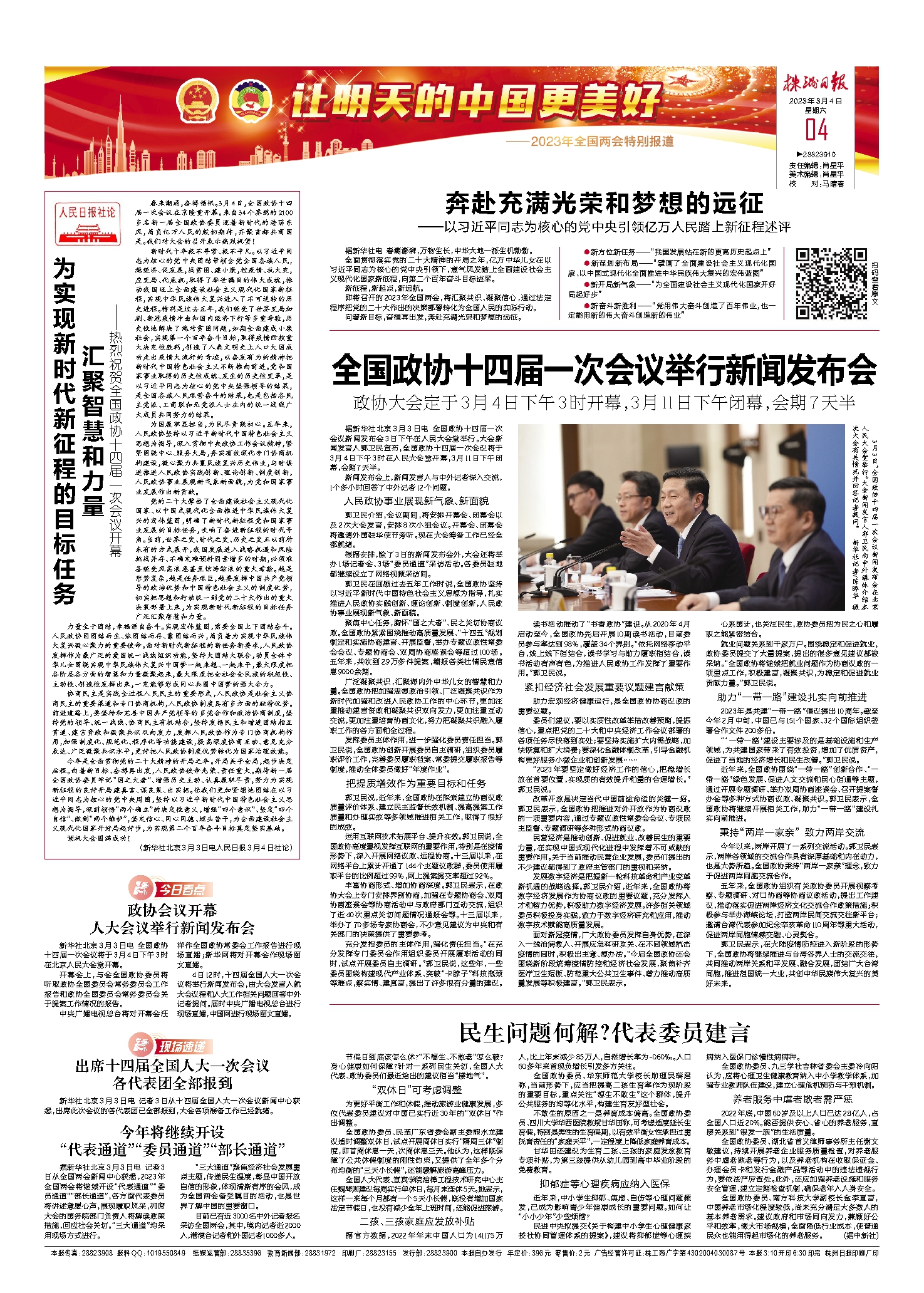 据新华社北京3月3日电 全国政协十四届一次会议新闻发布会3日下午在人民大会堂举行。大会新闻发言人郭卫民宣布,全国政协十四届一次会议将于3月4日下午3时在人民大会堂开幕,3月11日下午闭幕,会期7天半。