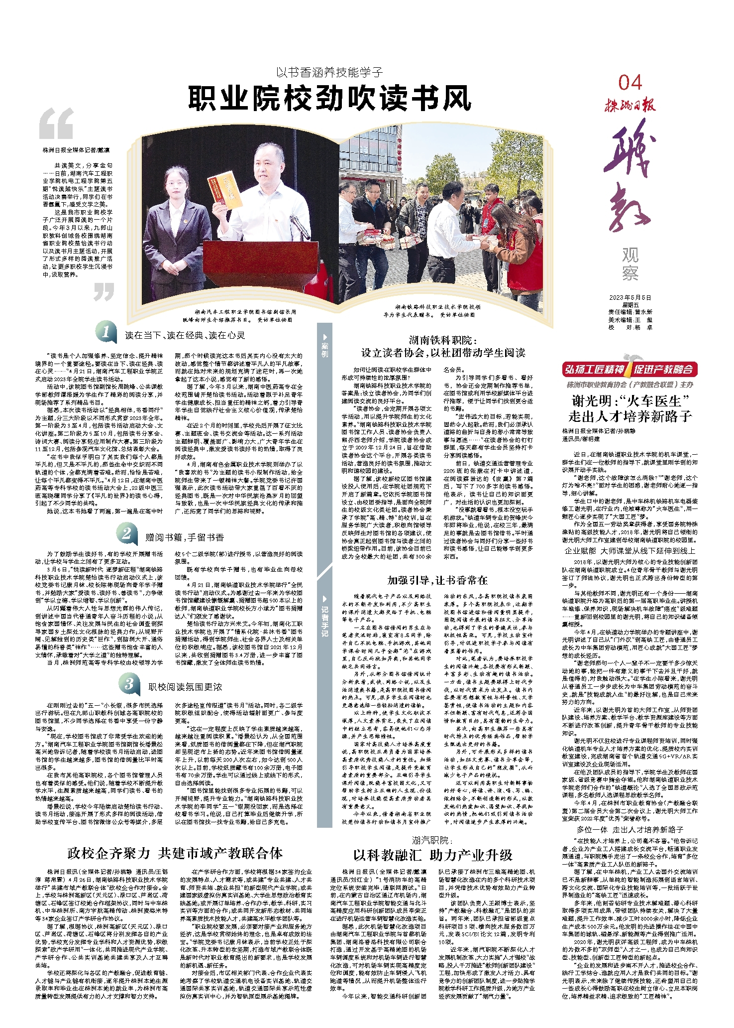 “企业的发展和进步离不开人才,推进校企合作、践行工学结合、造就应用人才是我们共同的目标。”谢光明表示,未来除了继续传授技能,还希望用自己的一些成长心得鼓励高职在校生树立信心、立足本职岗位,培养精益求精、追求极致的“工匠精神”。