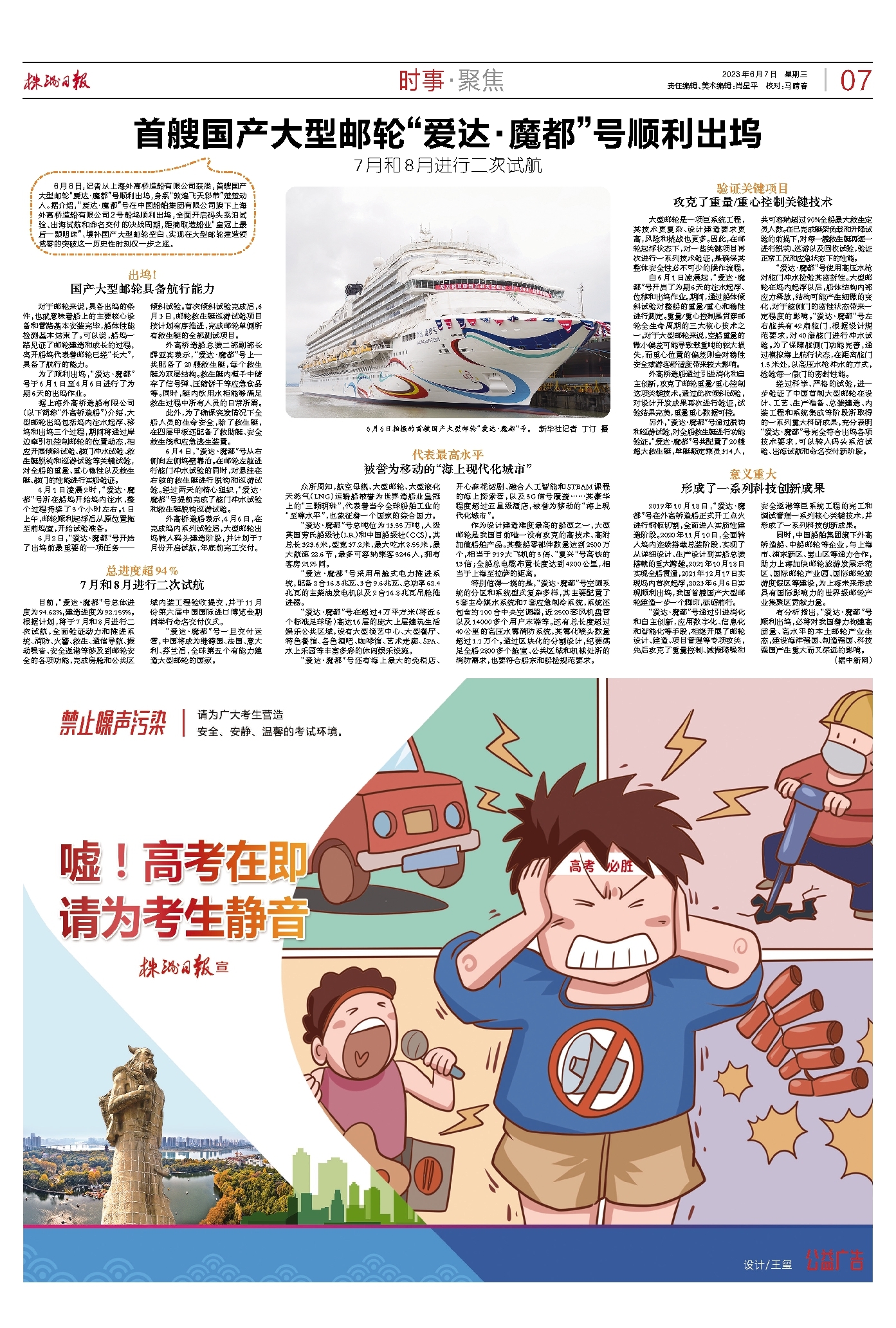 首艘国产大型邮轮“爱达·魔都”号顺利出坞