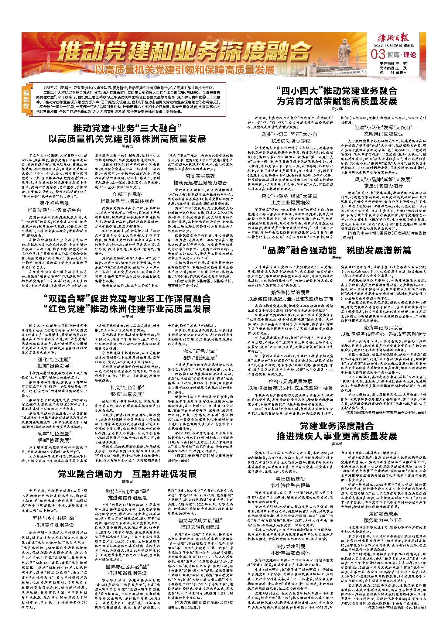 推动党建+业务“三大融合” 以高质量机关党建引领株洲高质量发展