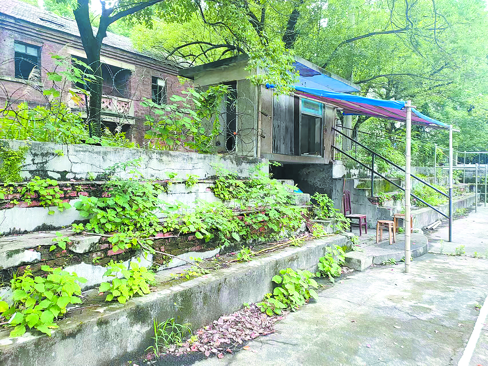 昔日热闹的电炉厂篮球场看台,如今已是杂草丛生。