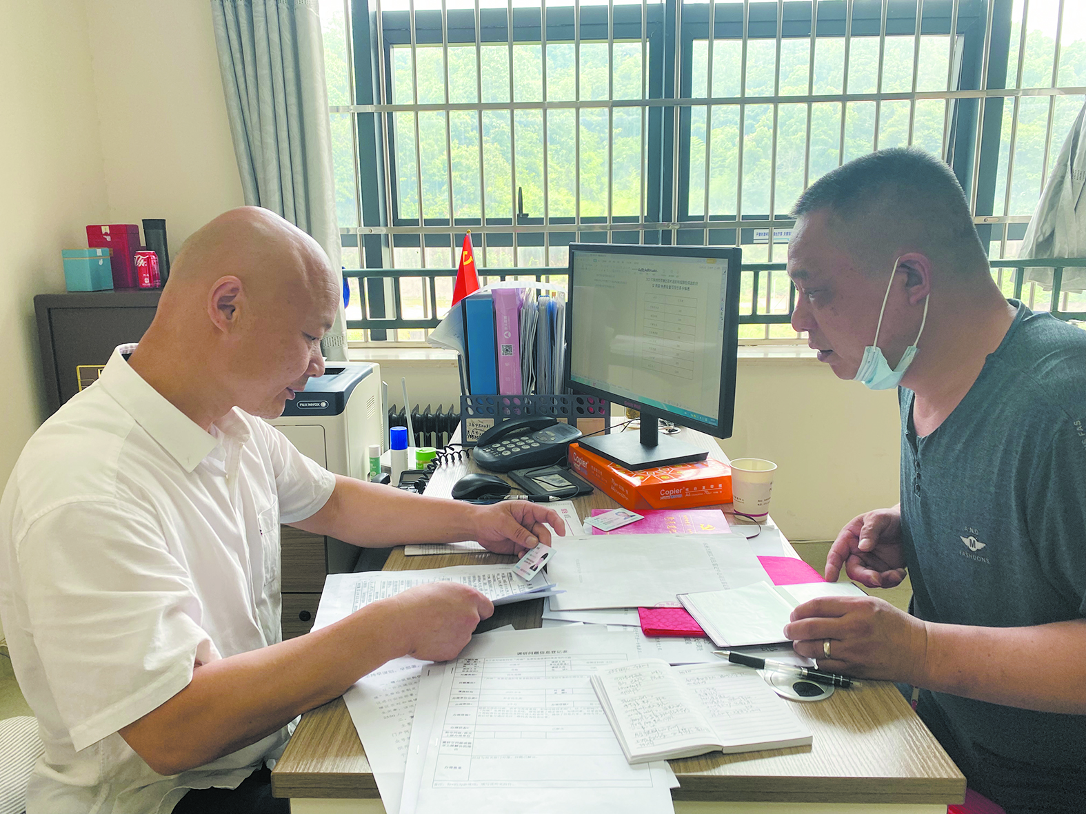 吴师傅向荷塘妇幼咨询补办《出生医学证明》事宜。 记者/旷昆红 摄