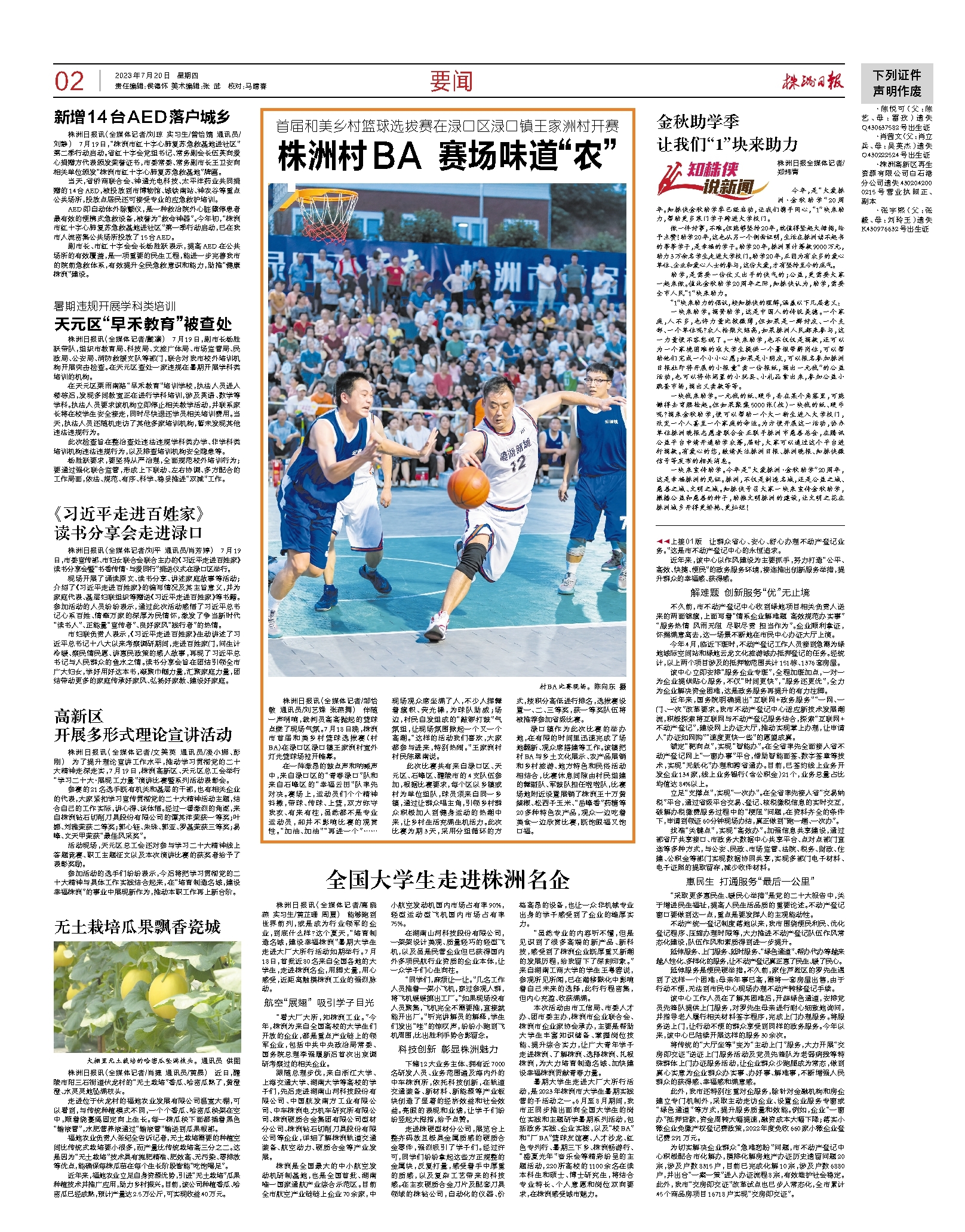2023年07月20日《株洲日报》