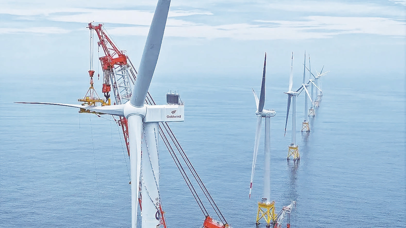16兆瓦海上风电机组完成吊装。 企业 供图