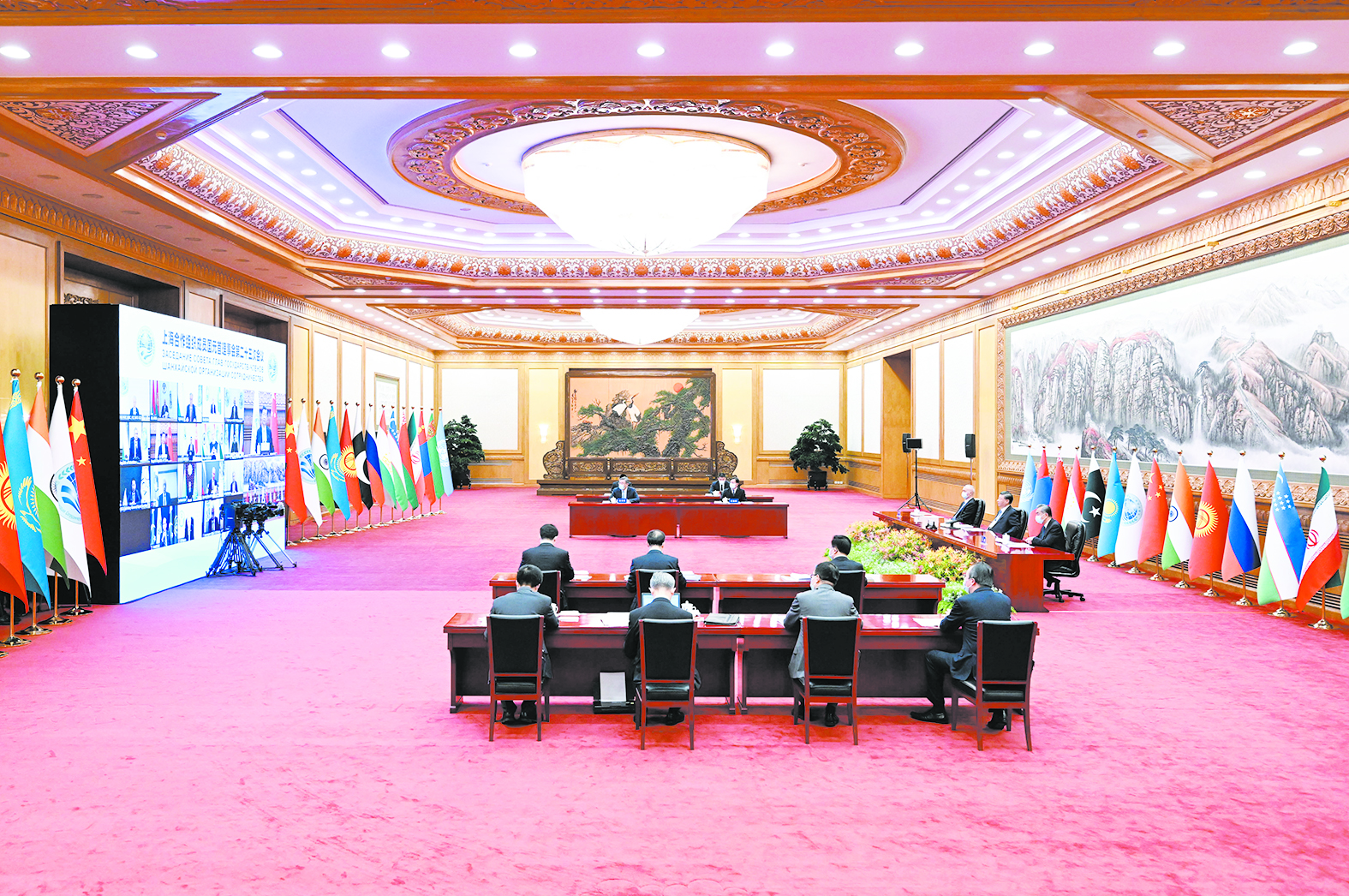7月4日下午,国家主席习近平在北京以视频方式出席上海合作组织成员国元首理事会第二十三次会议并发表题为《牢记初心使命 坚持团结协作 实现更大发展》的重要讲话。 新华社记者 /申宏 摄