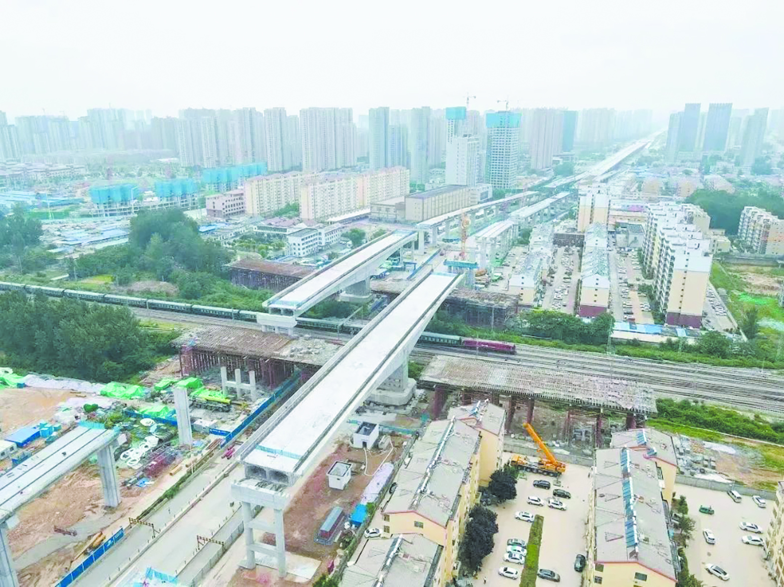 6月29日,长江路快速通道东侧主桥与引桥实现精准对接,各项指标均符合设计规范要求。