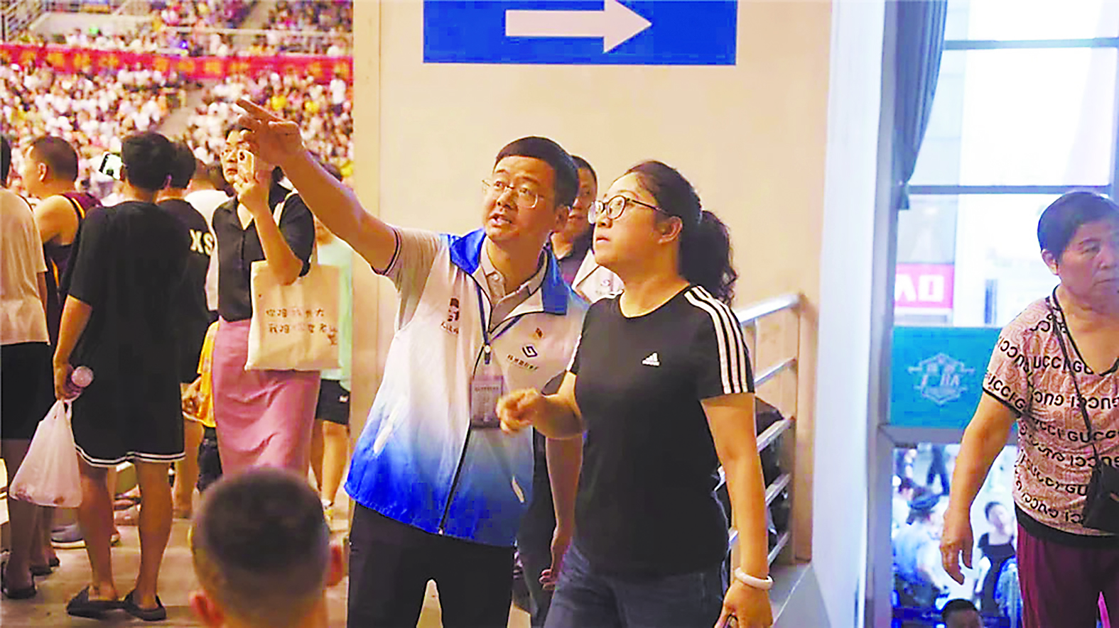 “厂BA”比赛期间,志愿者为观众指导服务。 受访者 供图