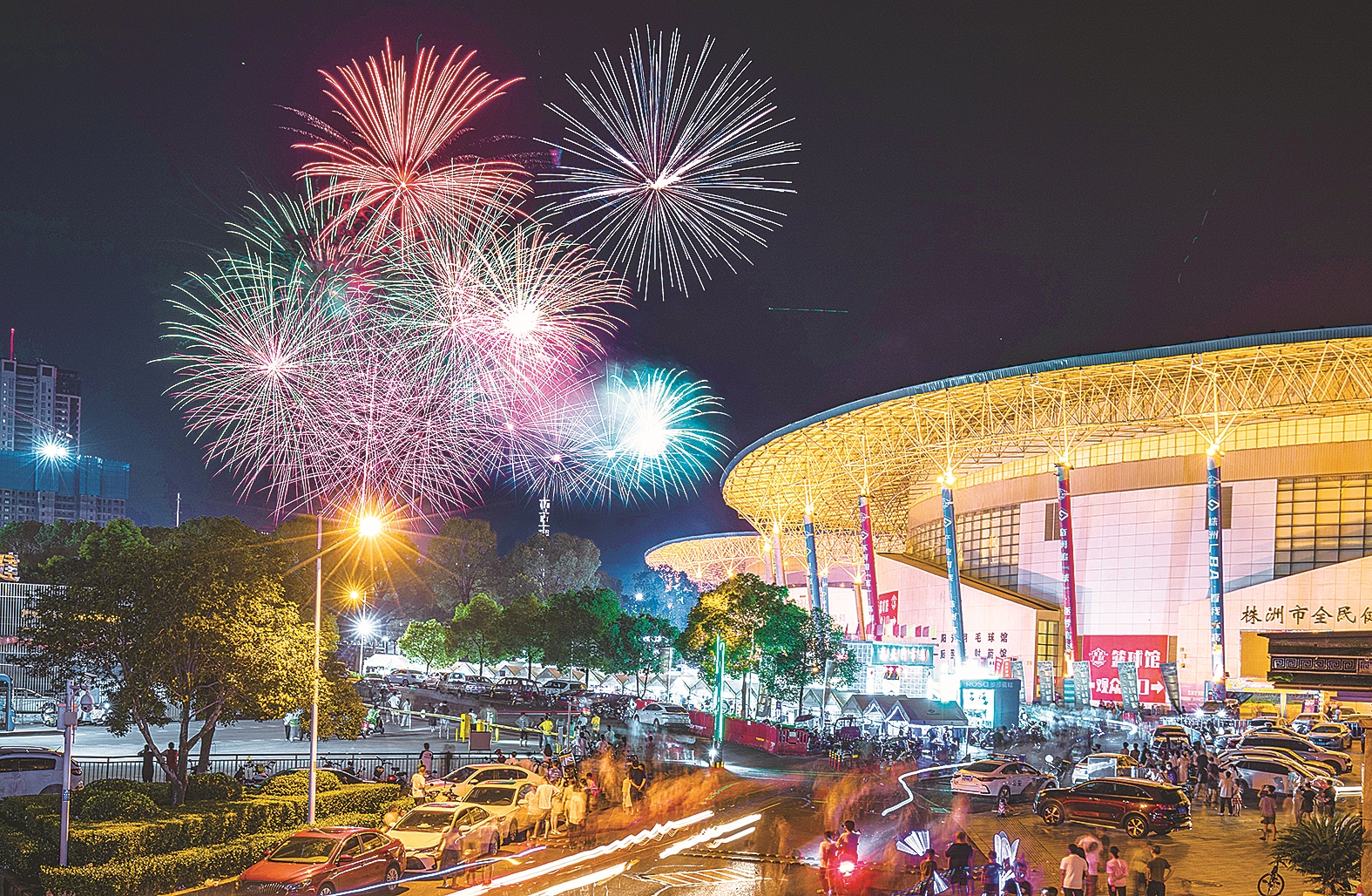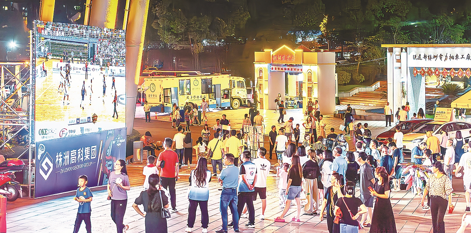 赛场外举办的大型音乐会,人们挥舞着灯光棒,高声应和着歌曲的节拍;《制造名城 工业印记》图片展板,吸引着“老株洲”们前来寻迹;现场复刻的厂矿大门前,不少市民在此驻足留影;而美食街,更是一如既往地买卖火爆,烟火气十足。