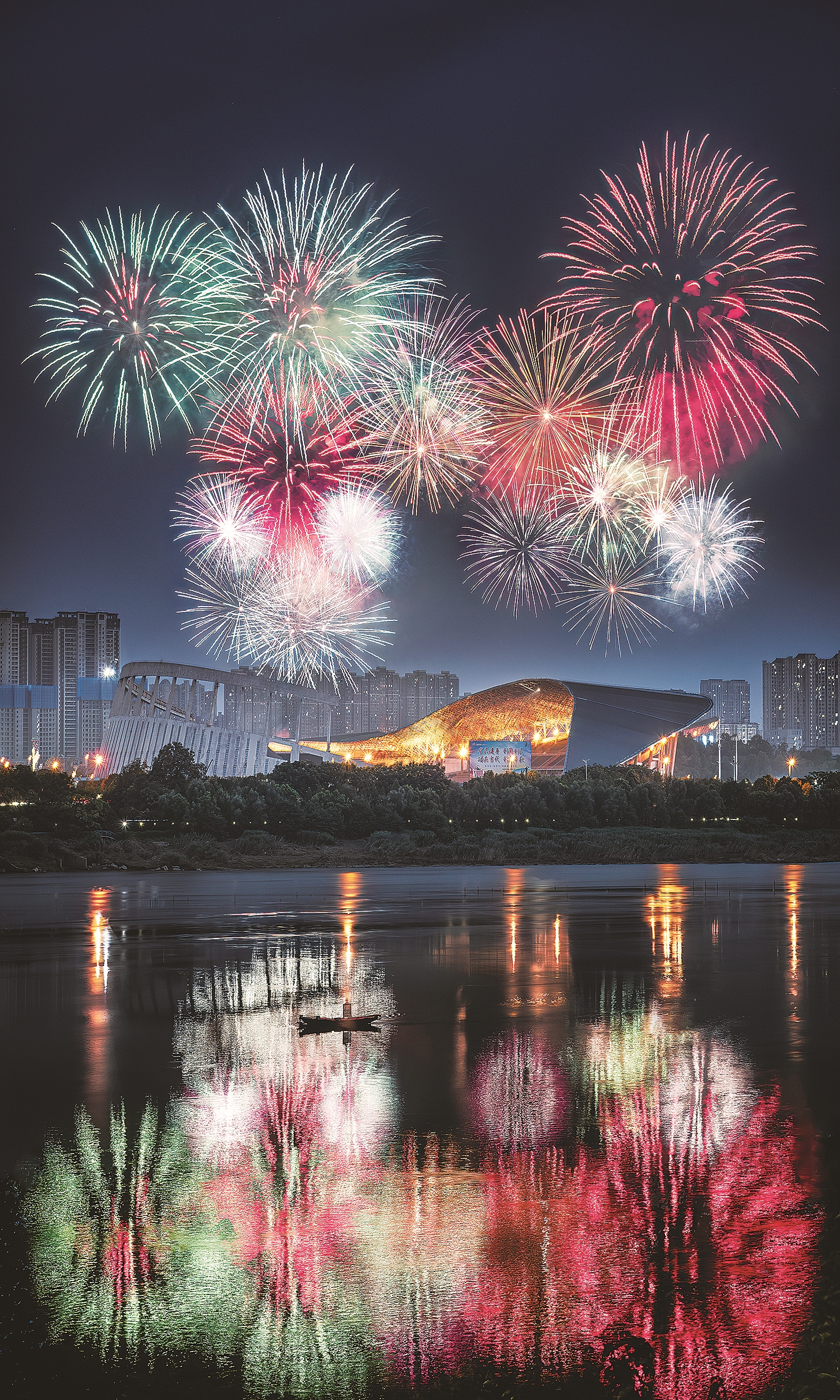 30日晚,一场盛大的烟花秀将“厂BA”推向新的高潮。 袁拥军 摄