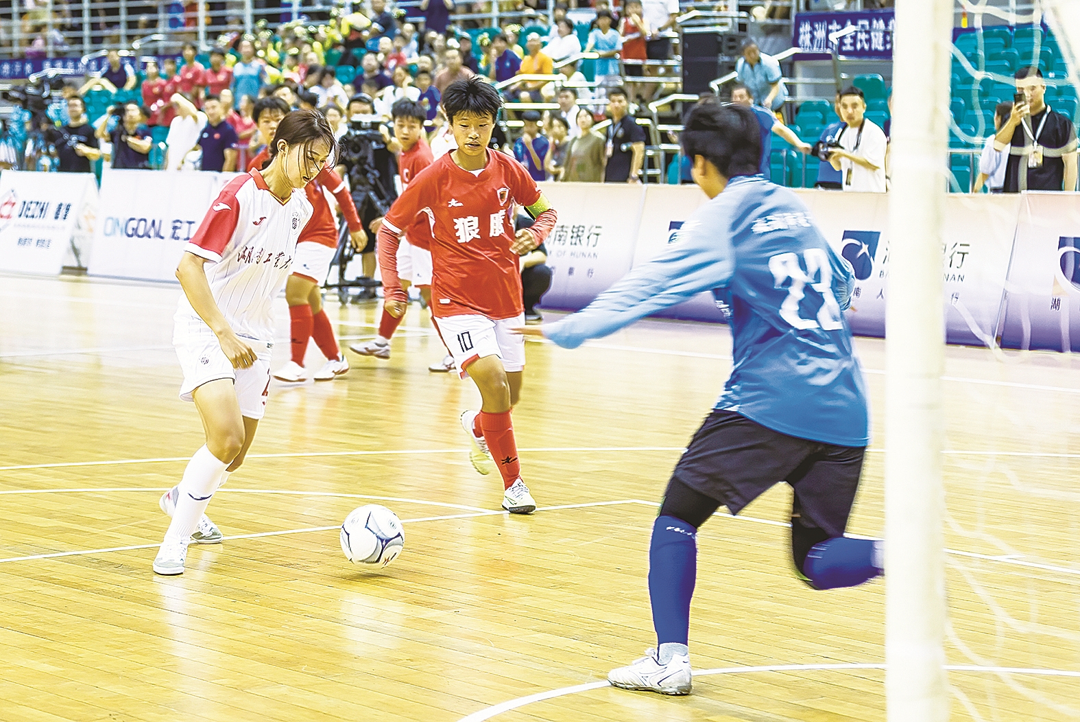在现场,南方中学女足与湖南工业大学女足展开了一场足球竞技。 陈向东 摄