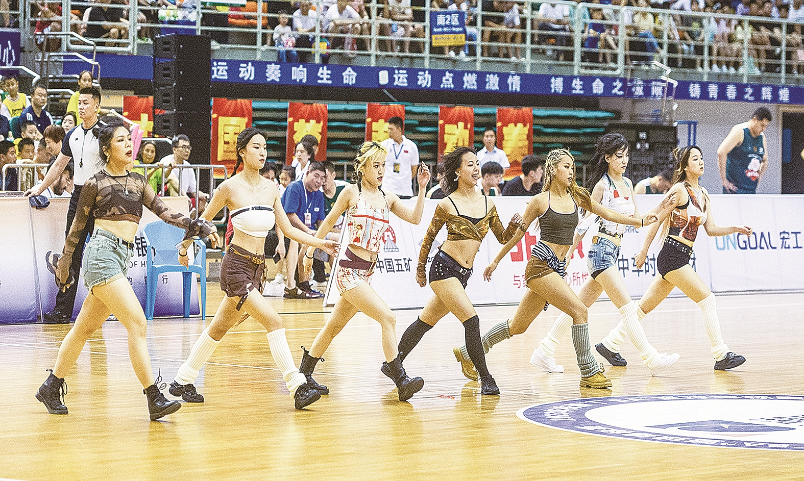中场,篮球宝贝们演绎激情。 郑安戈 摄