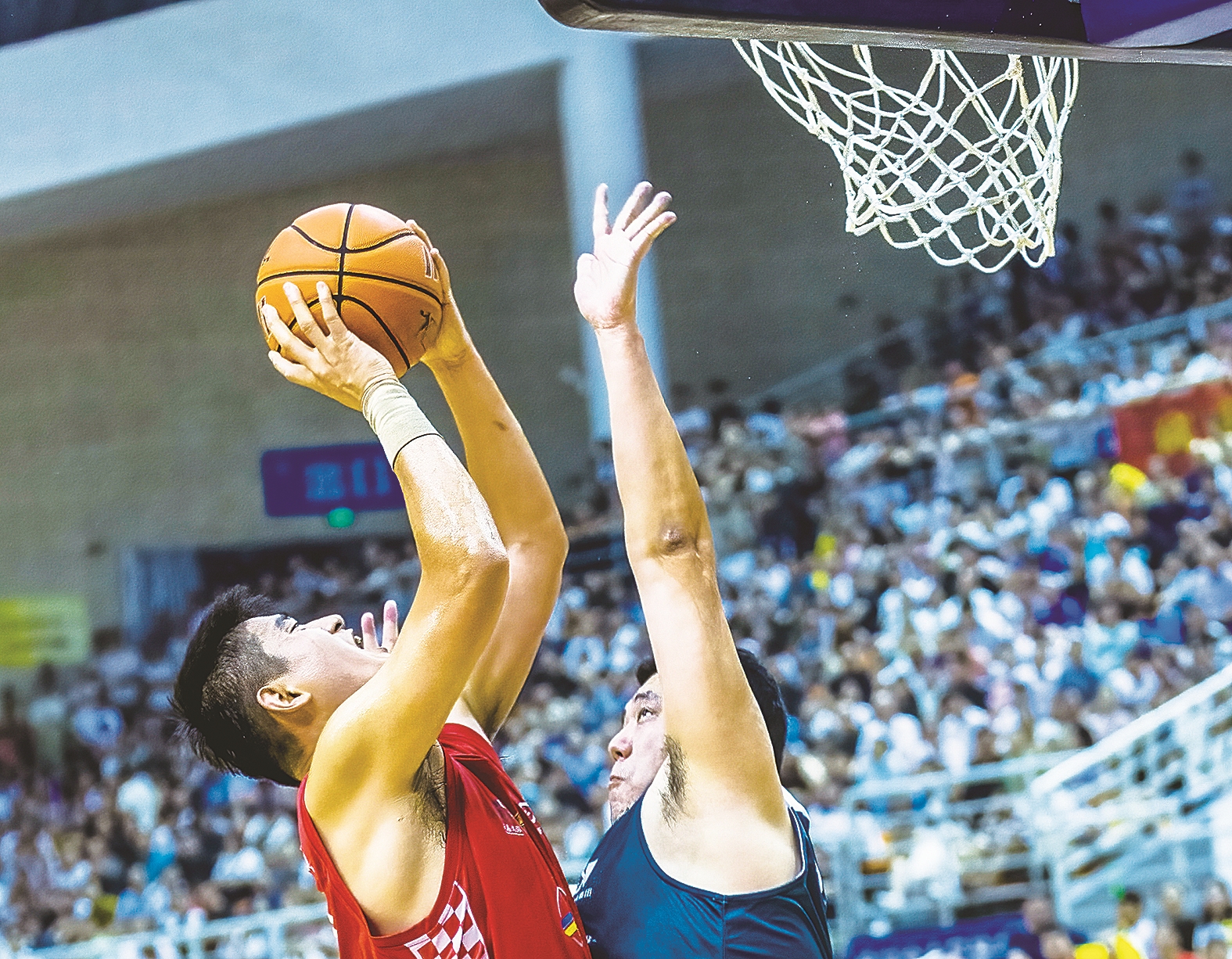 中国中车与时代新材两队在激烈的篮下拼抢中。 刘捷 摄