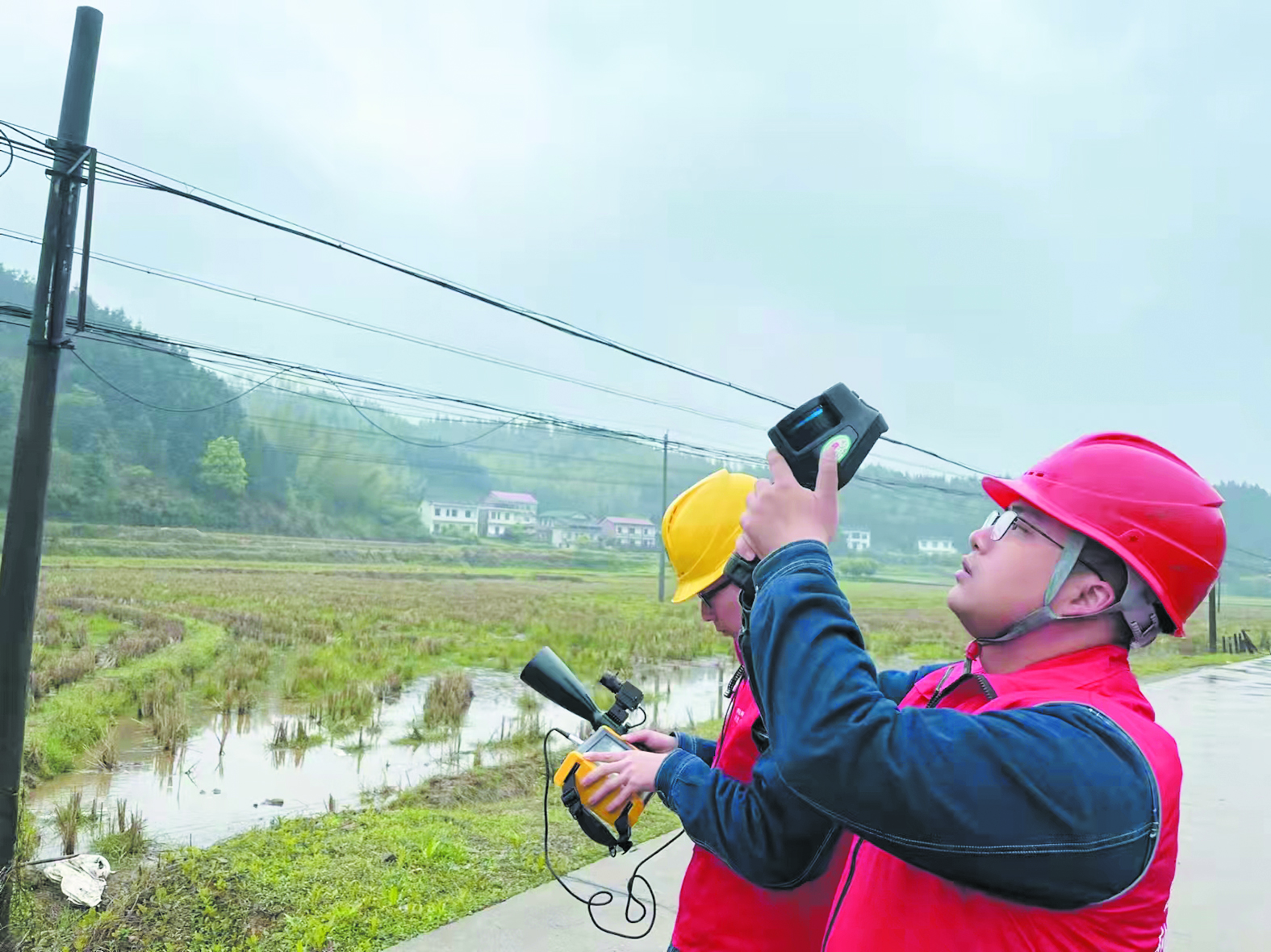工作人员冒着炎炎烈日,检查供电线路、设备。 通讯员 供图