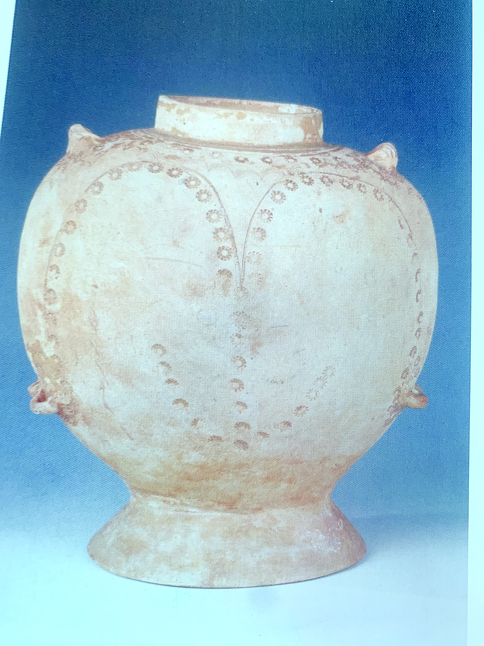 如此,也就可以略略还原这件罕见的青瓷罍的前世今生——三国时期,东吴辖境内的某窖口出产了大量青瓷罍,其中有压印连弧菊花纹装饰的一批次尤为罕见,为窖口最新试制的新品,这批新品上市后销售情况并不理想,故此后未再进行烧制,其中有一只,辗转流落到攸县某富室之手,并各种铜器一并入窖,也不知什么原因,此后未再开启,然后深埋地底,直至近千年后才重见天日,也成为昔日湘东郡市面繁荣的一个重要见证。