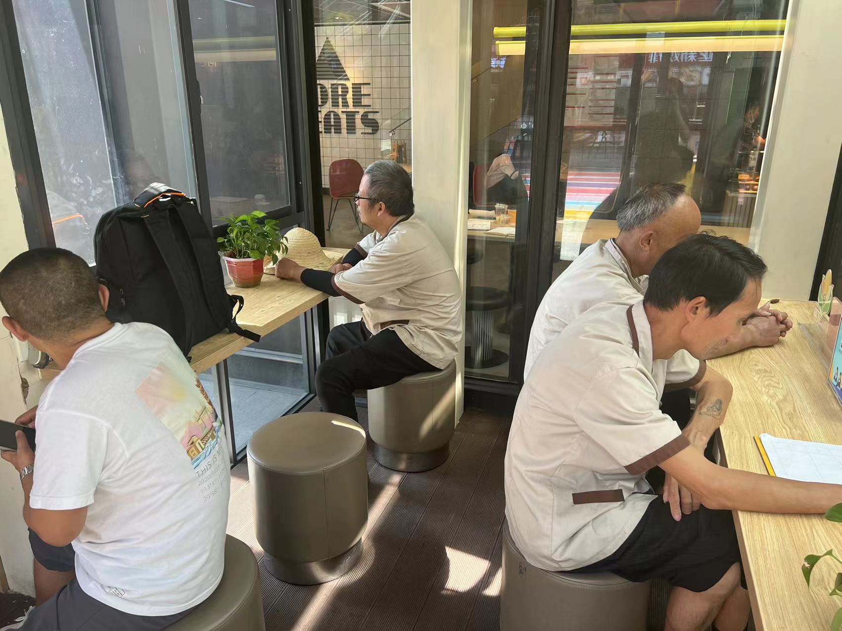 作为商圈的聚集区,建设街道是市中心最繁华的商圈地段之一。大批新就业人员活跃于此。然而,寸土寸金的商圈却无户外工作者的公共休憩场所。许多像邱彭一样的新就业人员累了只有坐在花坛边、石阶旁小憩,就餐时席地而坐是常态。
