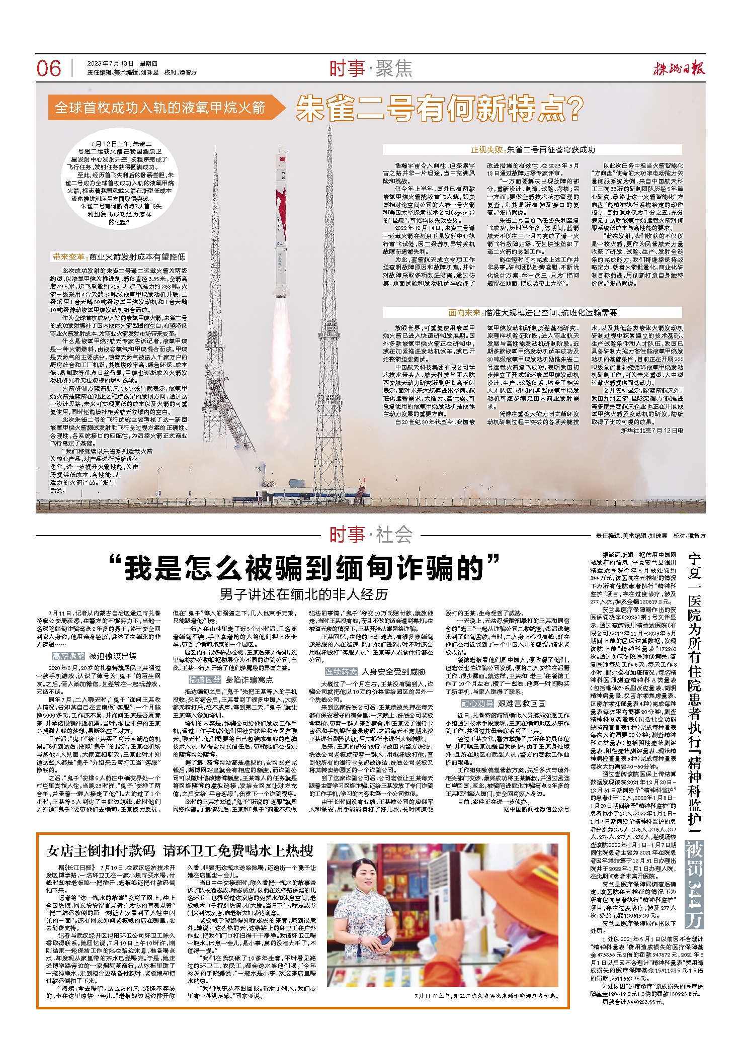 7月12日上午,朱雀二号遥二运载火箭在我国酒泉卫星发射中心发射升空,按程序完成了飞行任务,发射任务获得圆满成功。