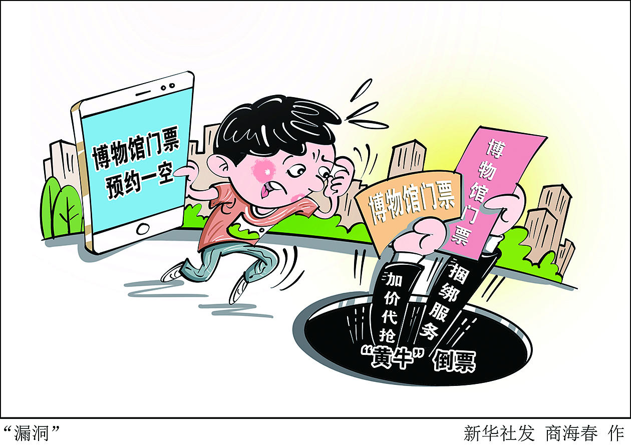 部分博物馆免费向公众开放是国家实施文化惠民工程的一项重要举措,意在更好满足人民群众不断增加的文化需求。而钻空子的“黄牛”损害了公众利益和惠民政策落地。
